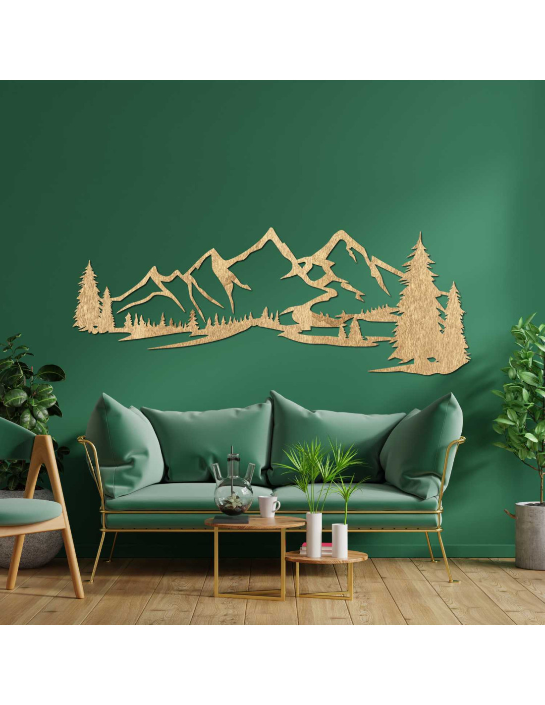 Eine Wanddekoration aus Holz mit Berglandschaftsmotiv ist ein modernes und elegantes Accessoire, das jedem Interieur eine friedliche Note der Natur verleiht.