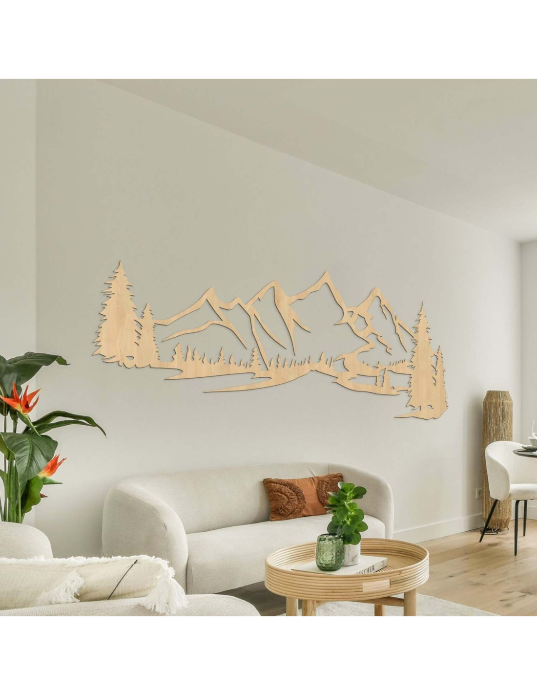 Die moderne Holzdekoration „ Berge und Wald“ ist ein ideales Accessoire für alle, die ihr Interieur mit einem zeitlosen Naturdesign aufpeppen möchten.