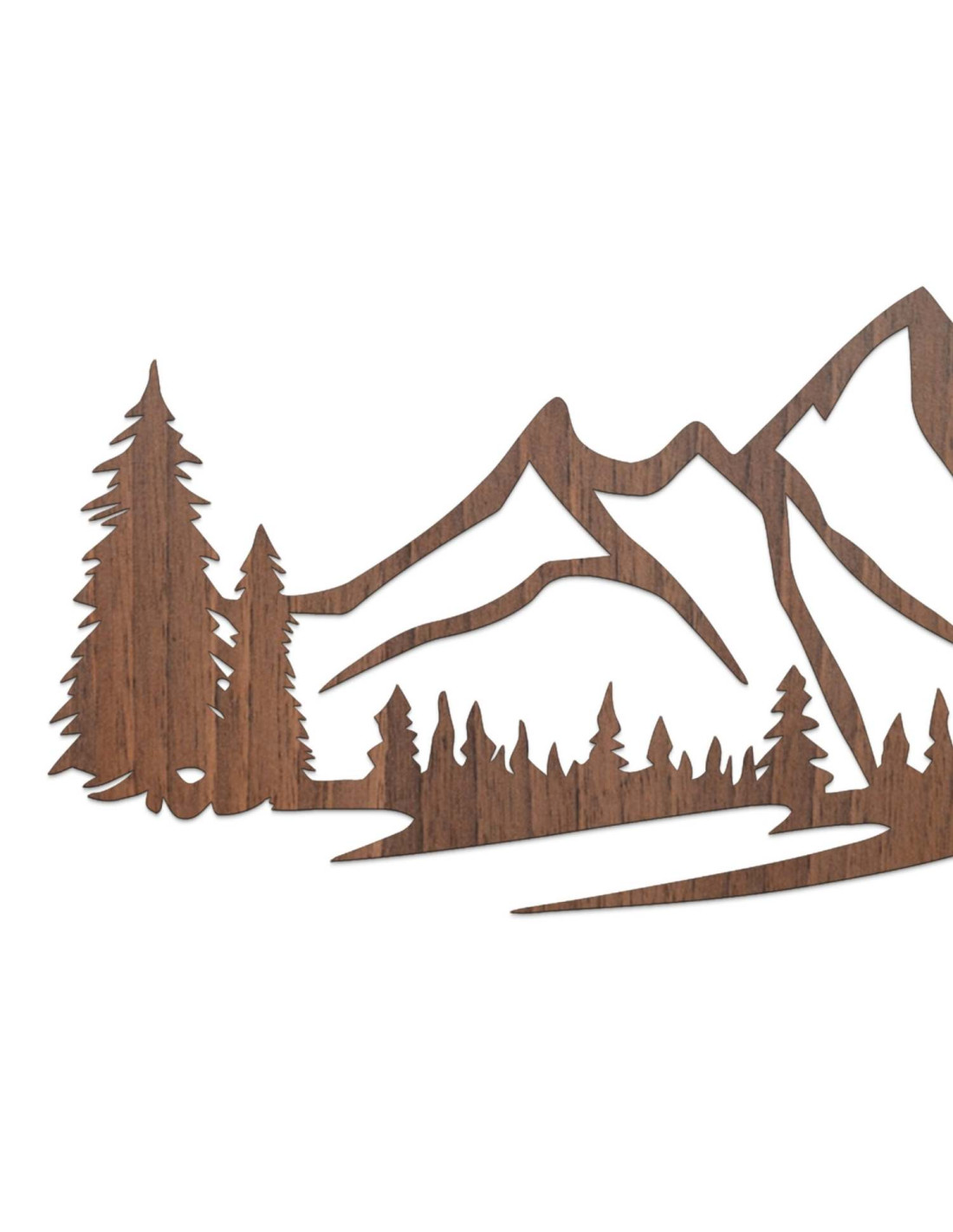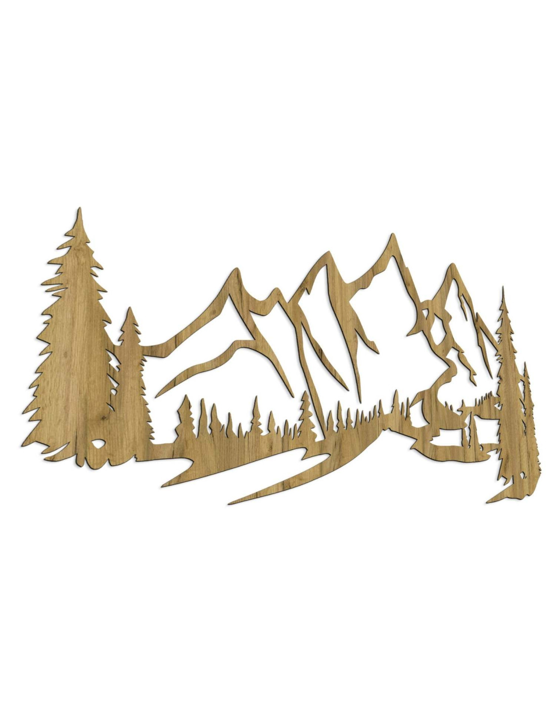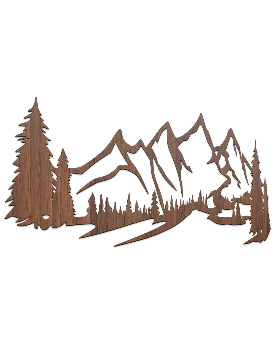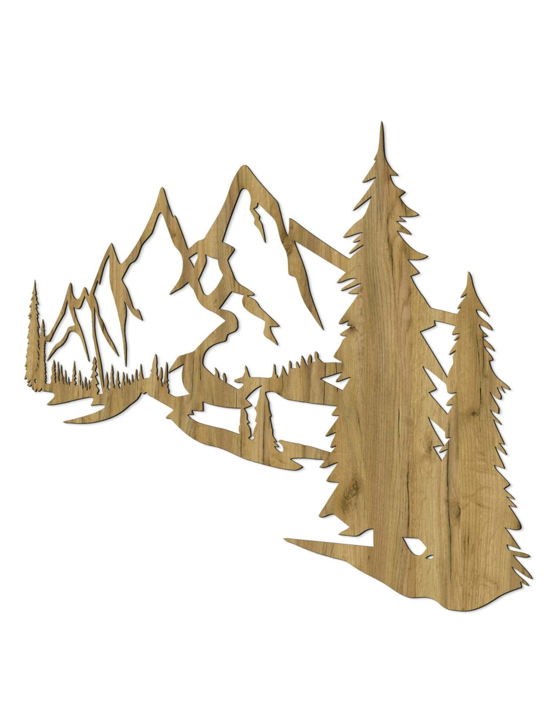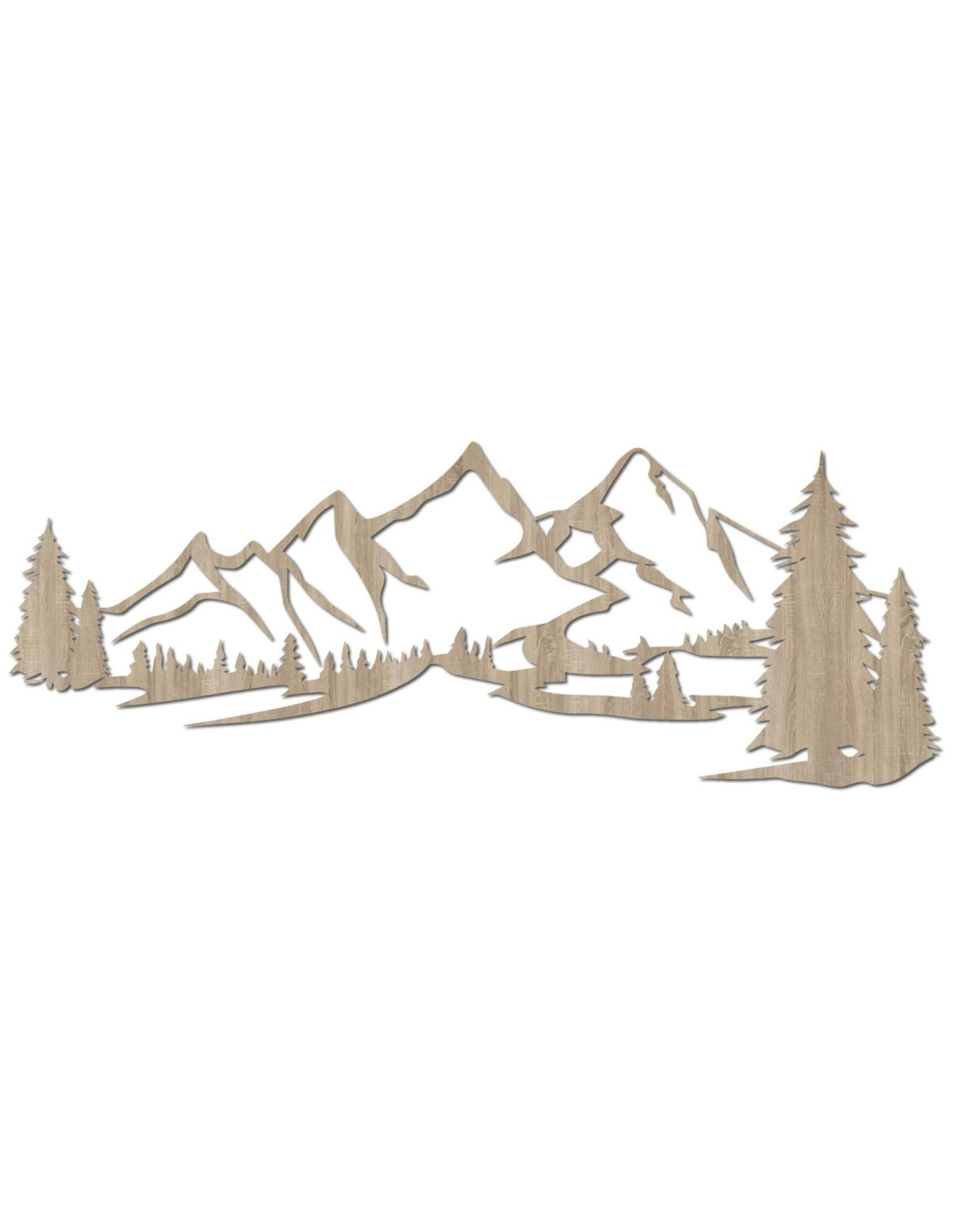 Die Kombination aus Berglandschaften, Nadelbäumen und präzisem Laserschnitt schafft eine unverwechselbare, dominante Ästhetik, die im Wohnzimmer, Schlafzimmer, Arbeitszimmer und Flur wunderschön zur Geltung kommt.
