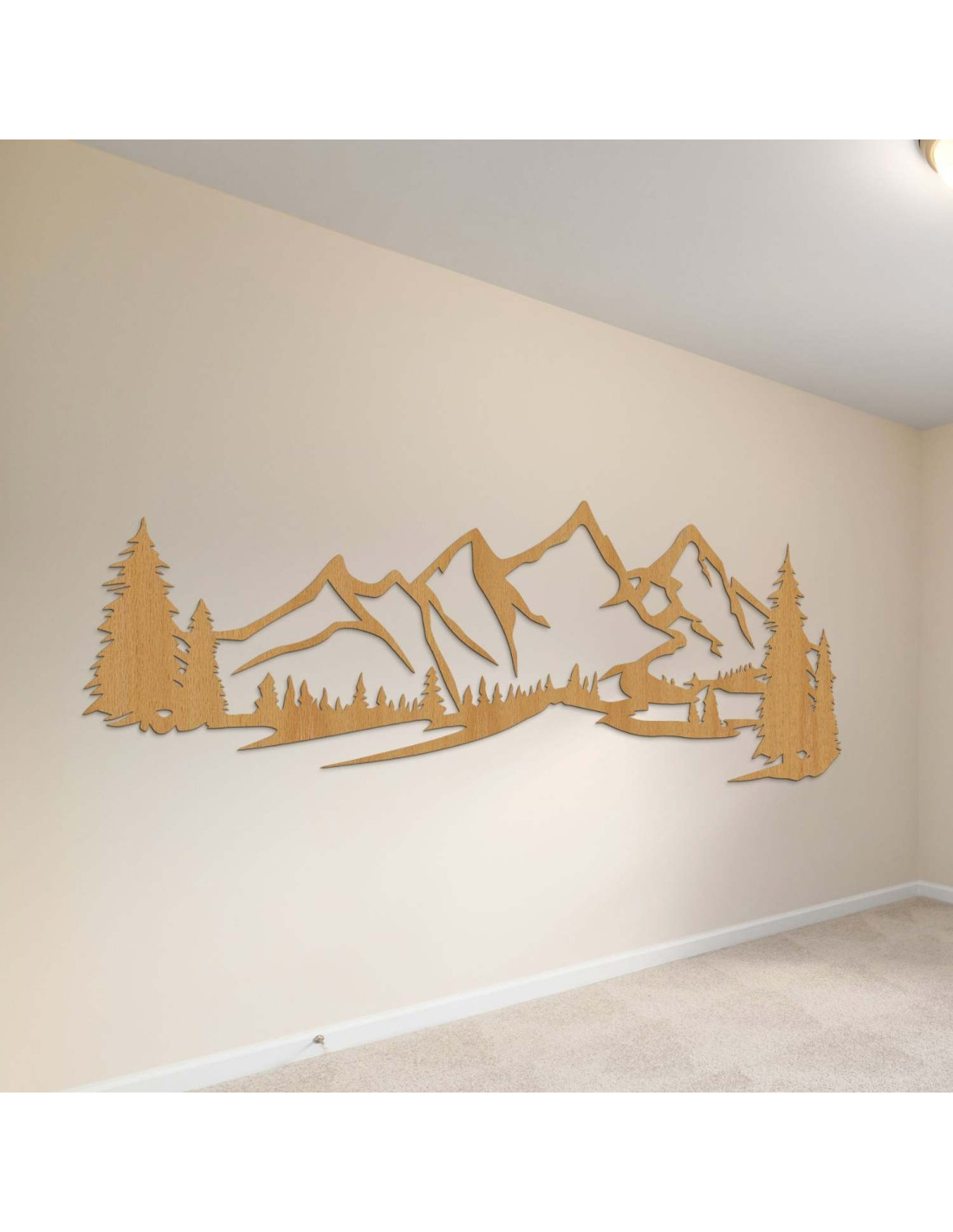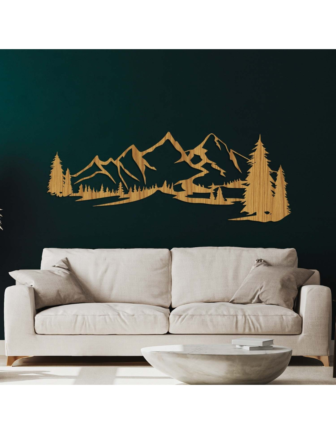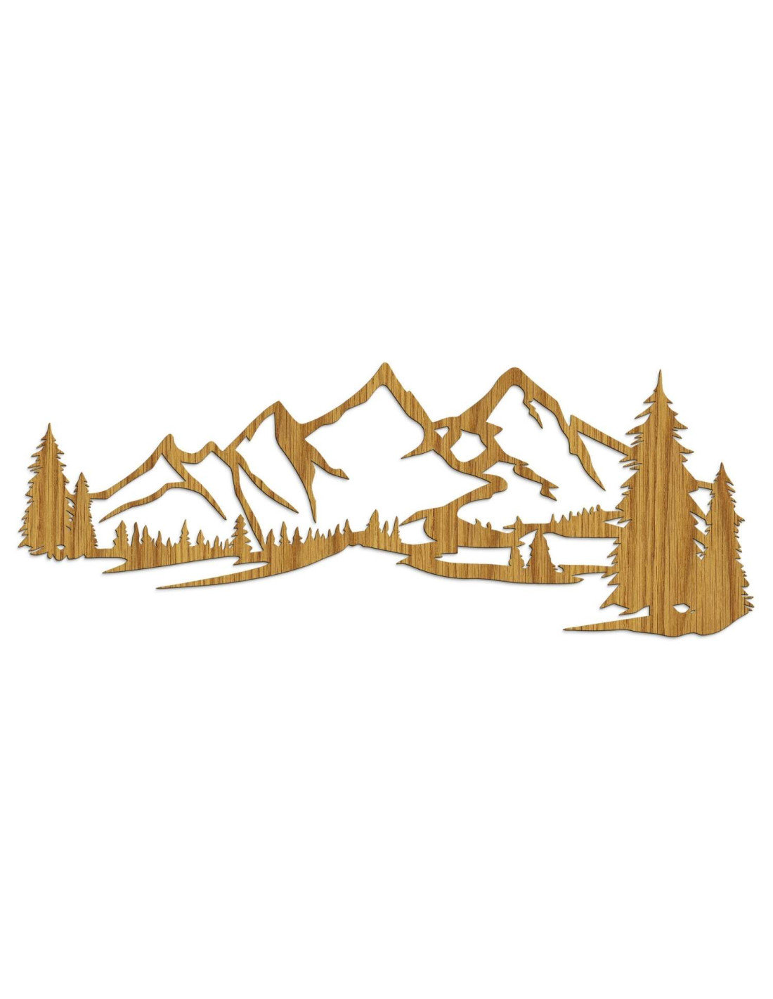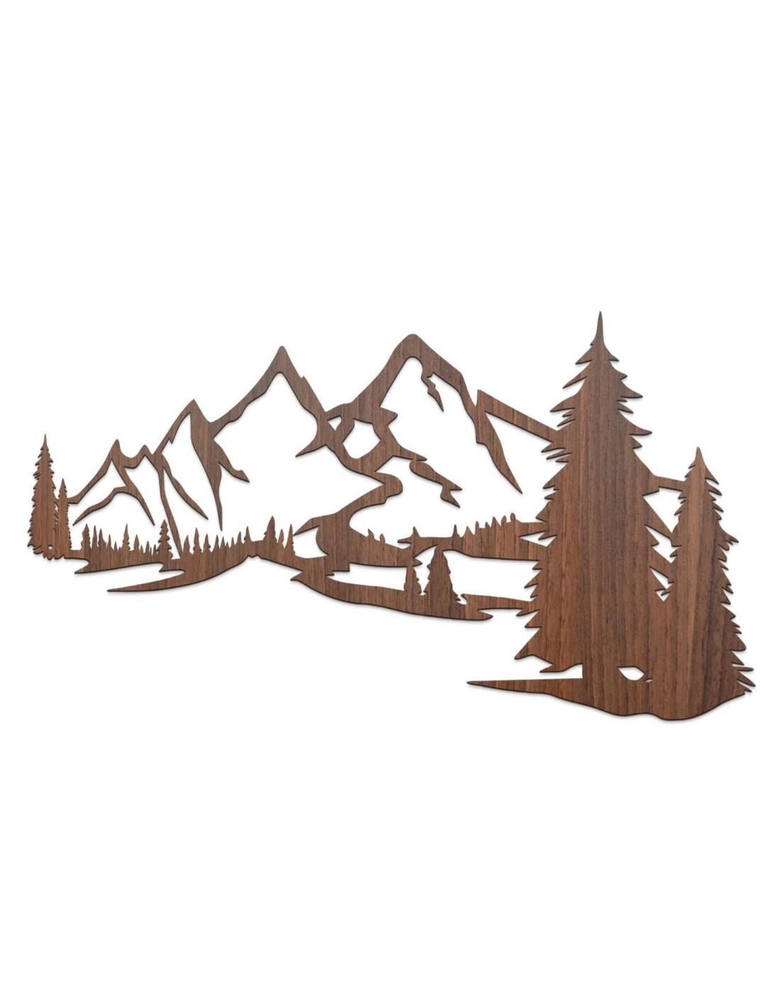 Die Kombination aus Berglandschaften, Nadelbäumen und präzisem Laserschnitt schafft eine unverwechselbare, dominante Ästhetik, die im Wohnzimmer, Schlafzimmer, Arbeitszimmer und Flur wunderschön zur Geltung kommt.