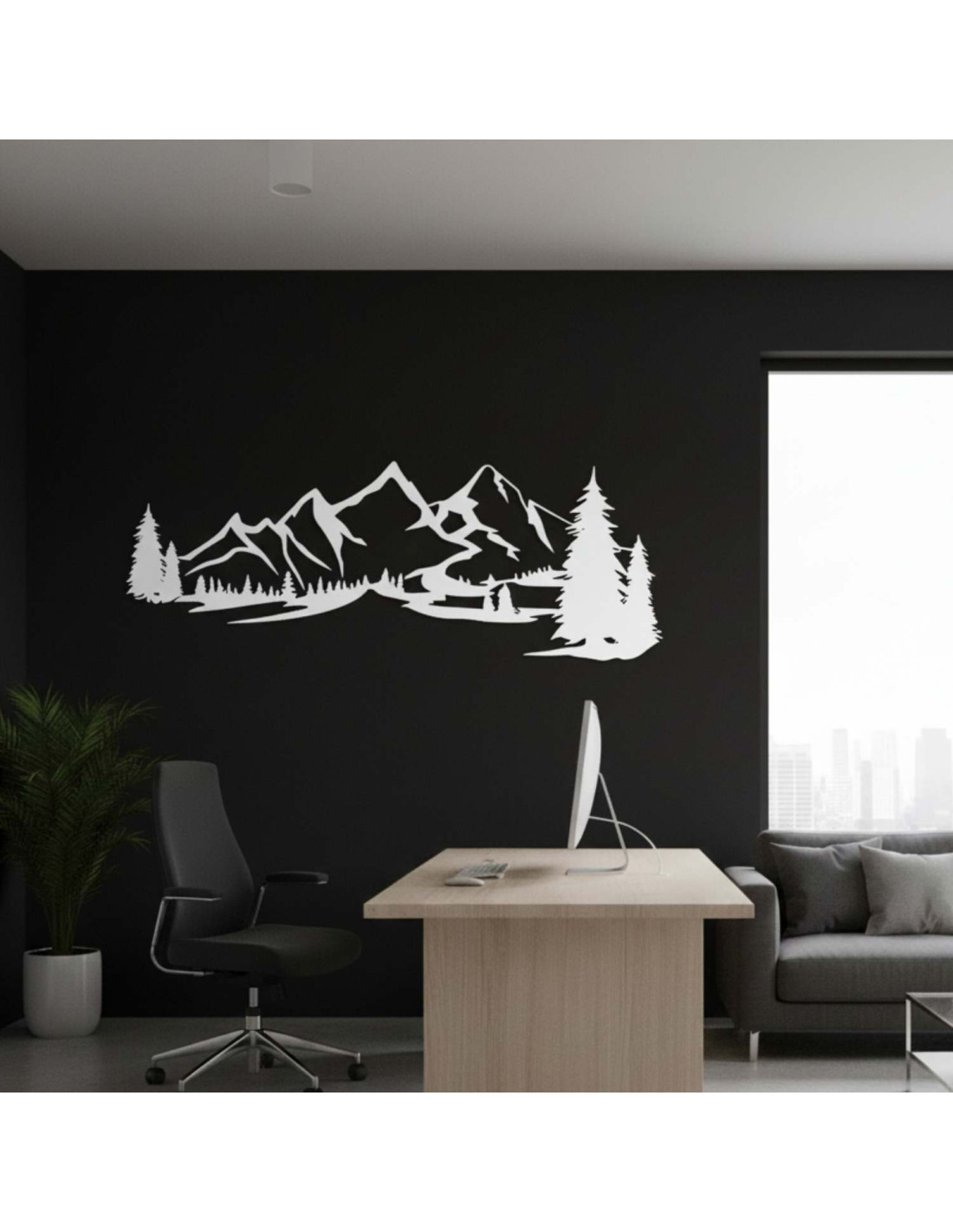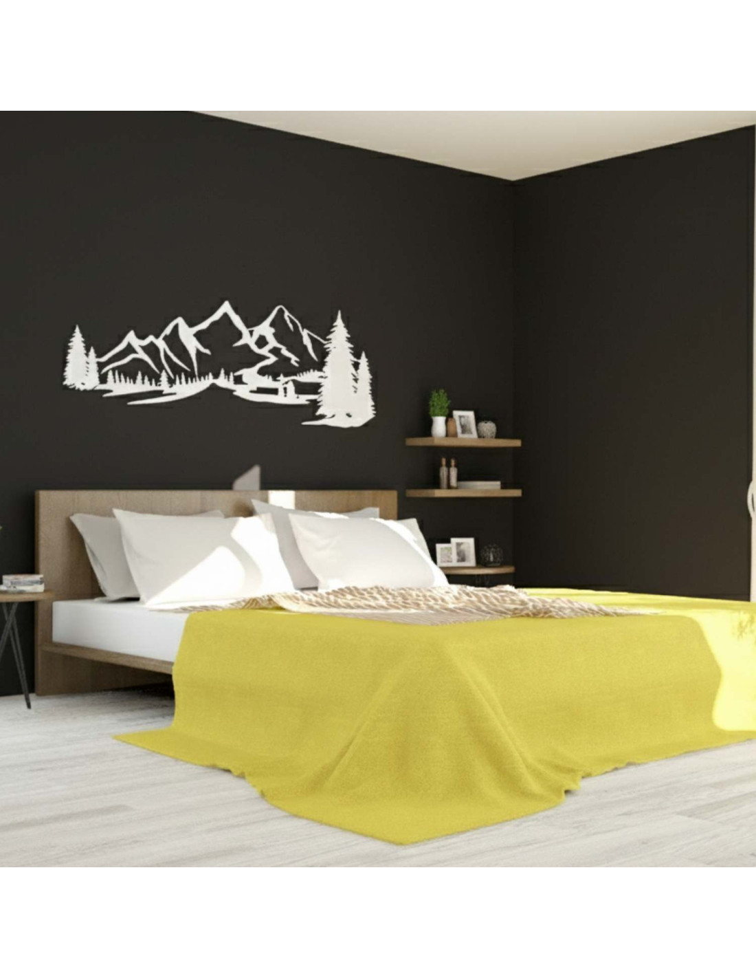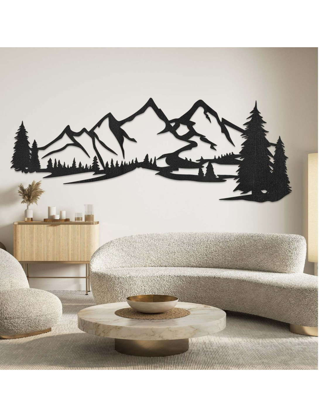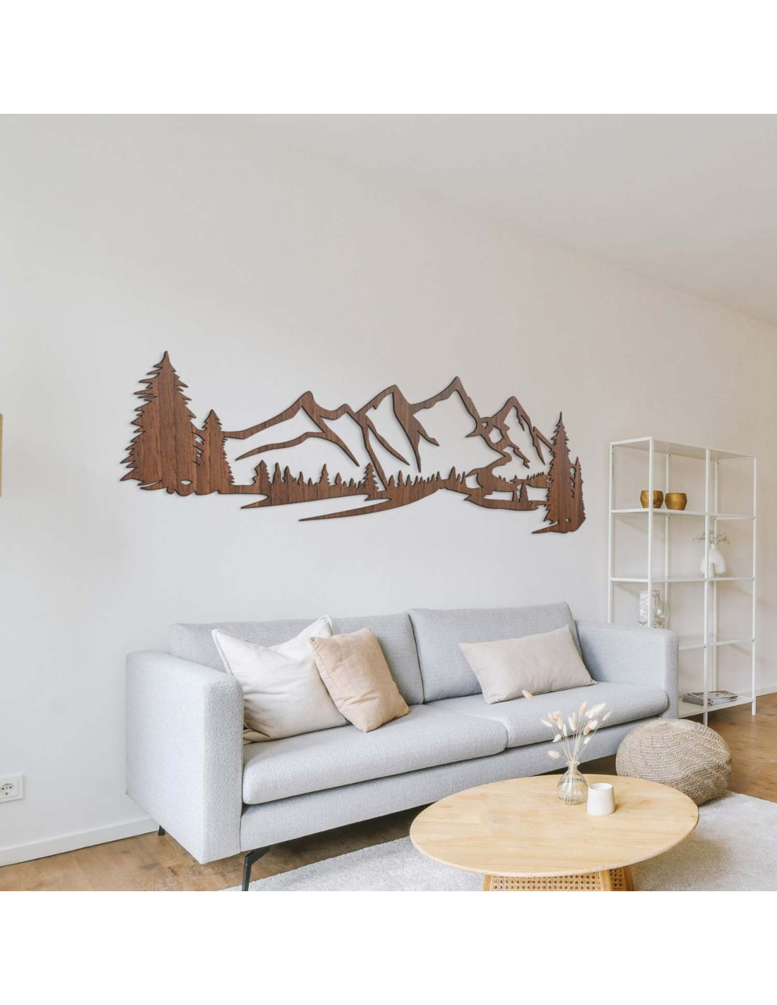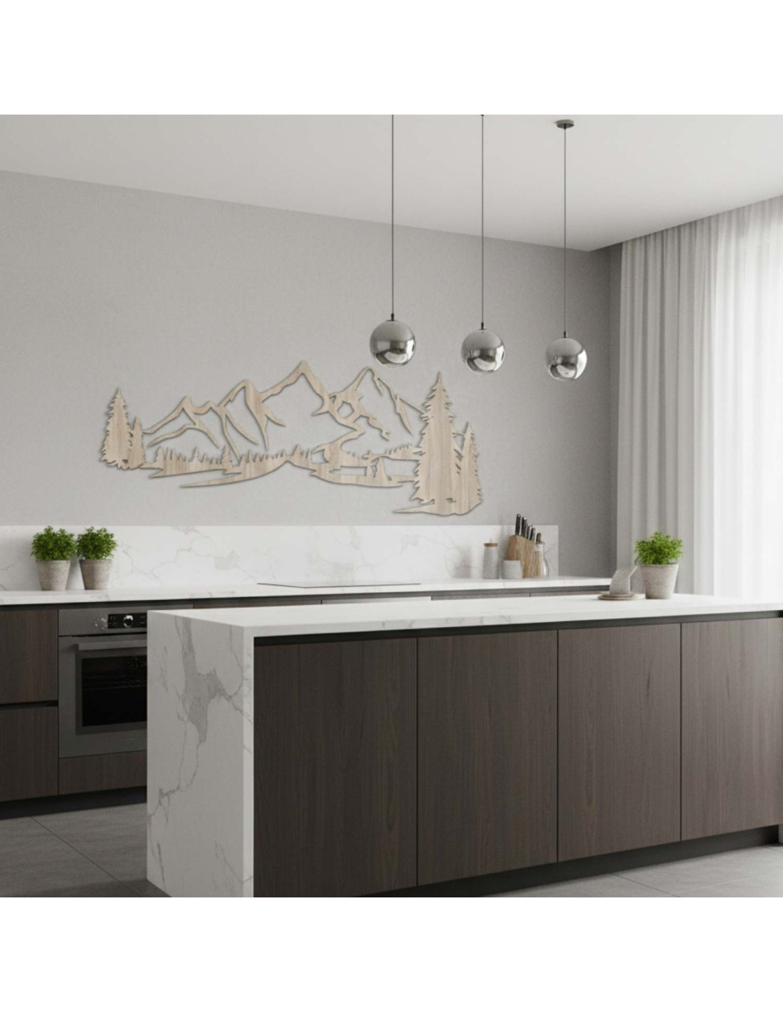 Die Kombination aus Berglandschaften, Nadelbäumen und präzisem Laserschnitt schafft eine unverwechselbare, dominante Ästhetik, die im Wohnzimmer, Schlafzimmer, Arbeitszimmer und Flur wunderschön zur Geltung kommt.