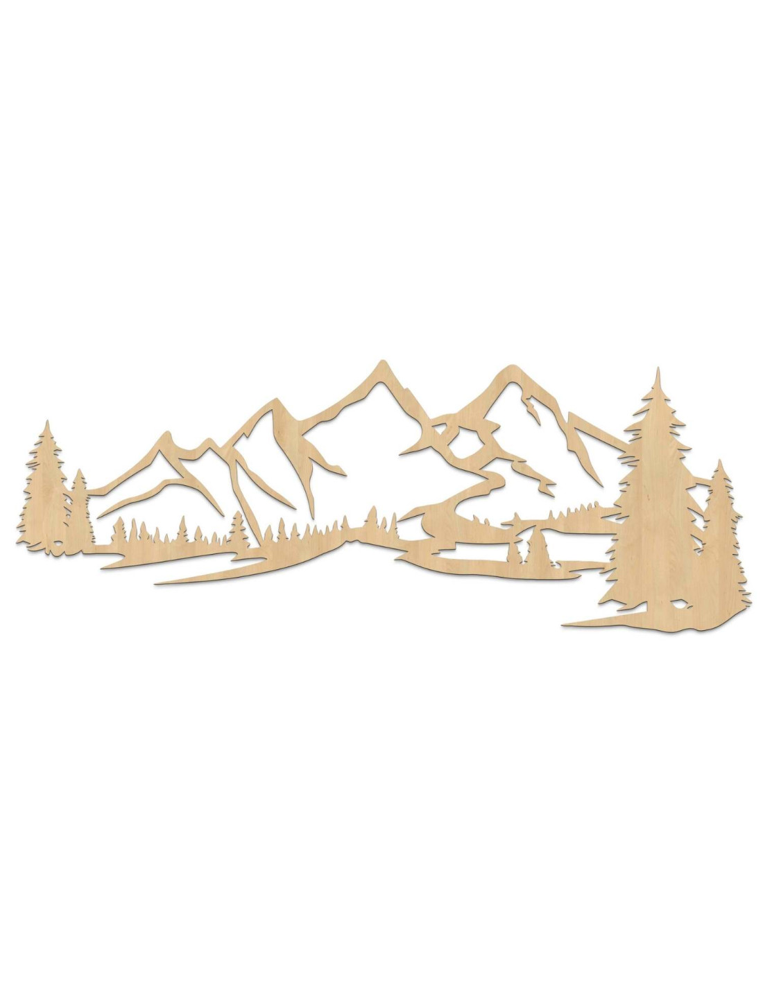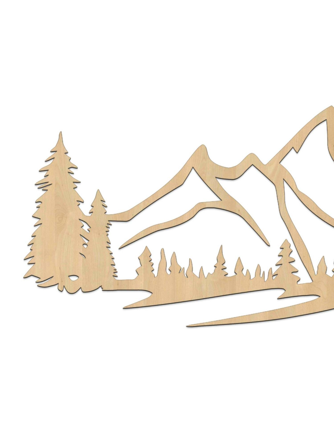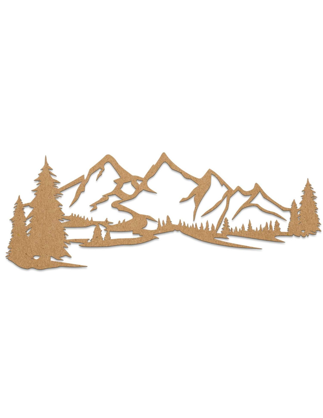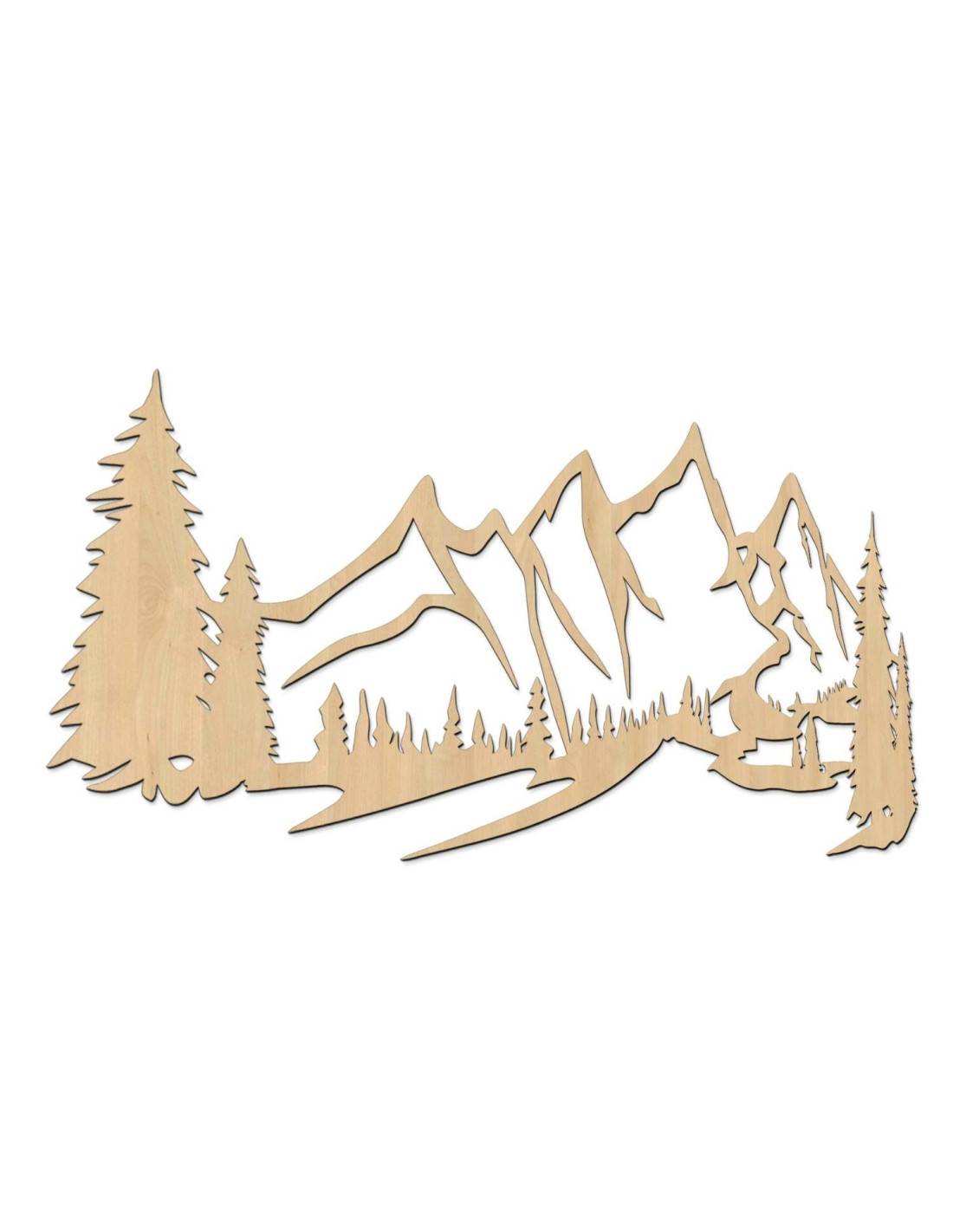 Die Landschaft mit ihren majestätischen Bergen und Nadelbäumen ist mit präzisem Laserschnitt herausgearbeitet, wodurch feine Details, klare Linien und eine professionelle Verarbeitungsqualität gewährleistet werden.