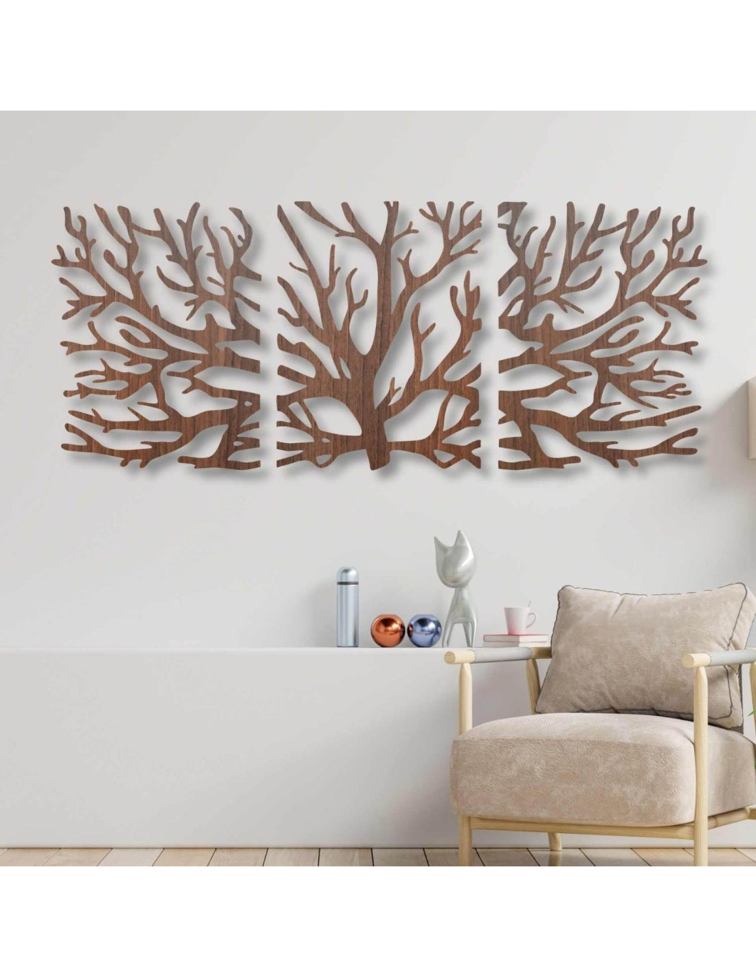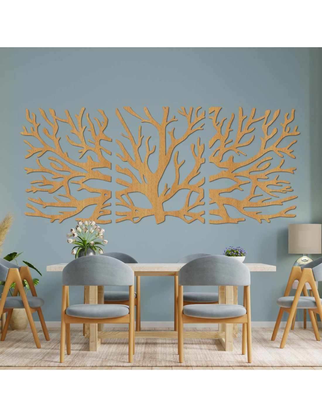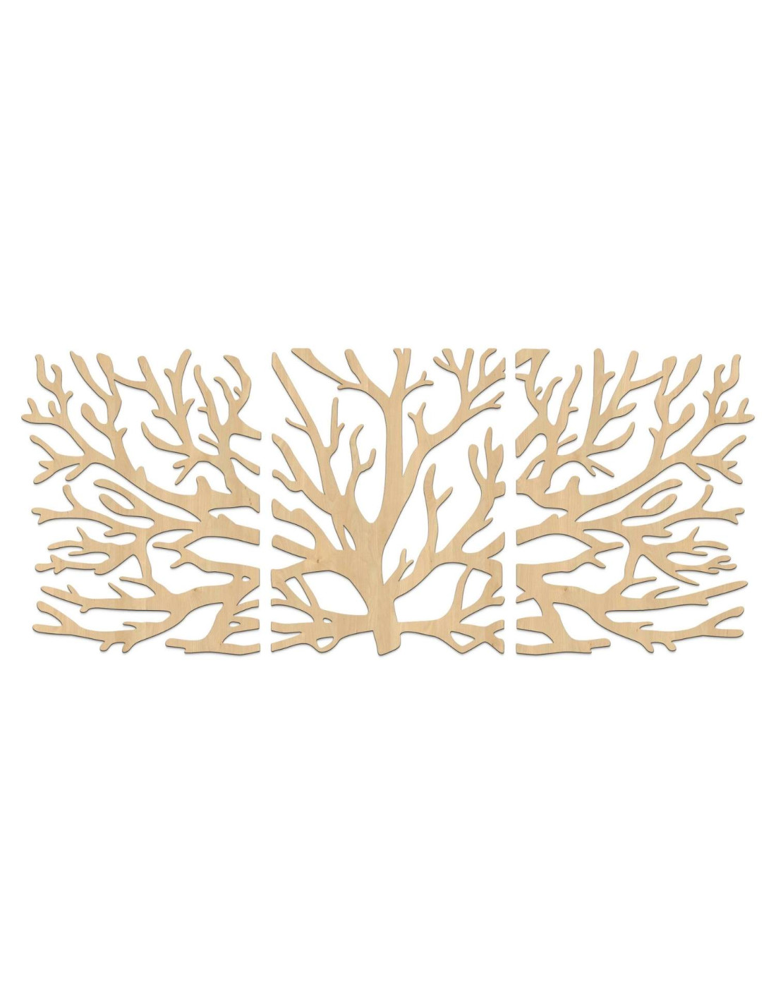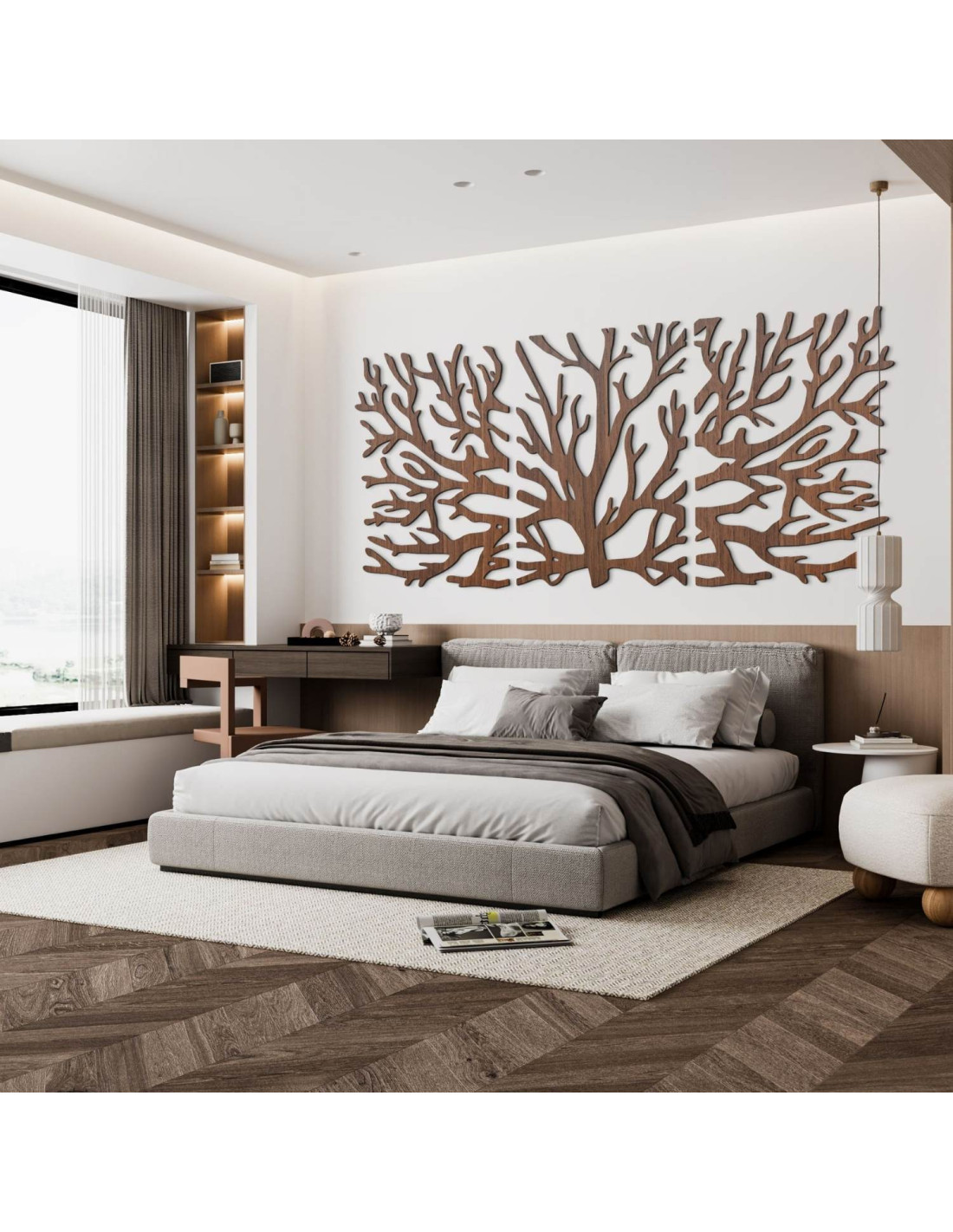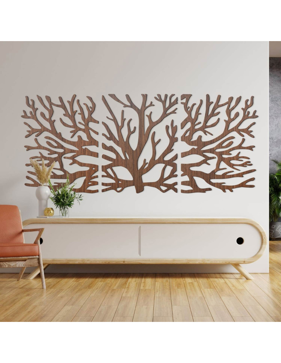 Entdecken Sie ein dreiteiliges Holzbild mit dem Motiv des Lebensbaums – eine harmonische Kombination aus modernem Design , natürlicher Symbolik und künstlerischer Eleganz , die Ihrem Interieur einen einzigartigen Charakter verleiht.