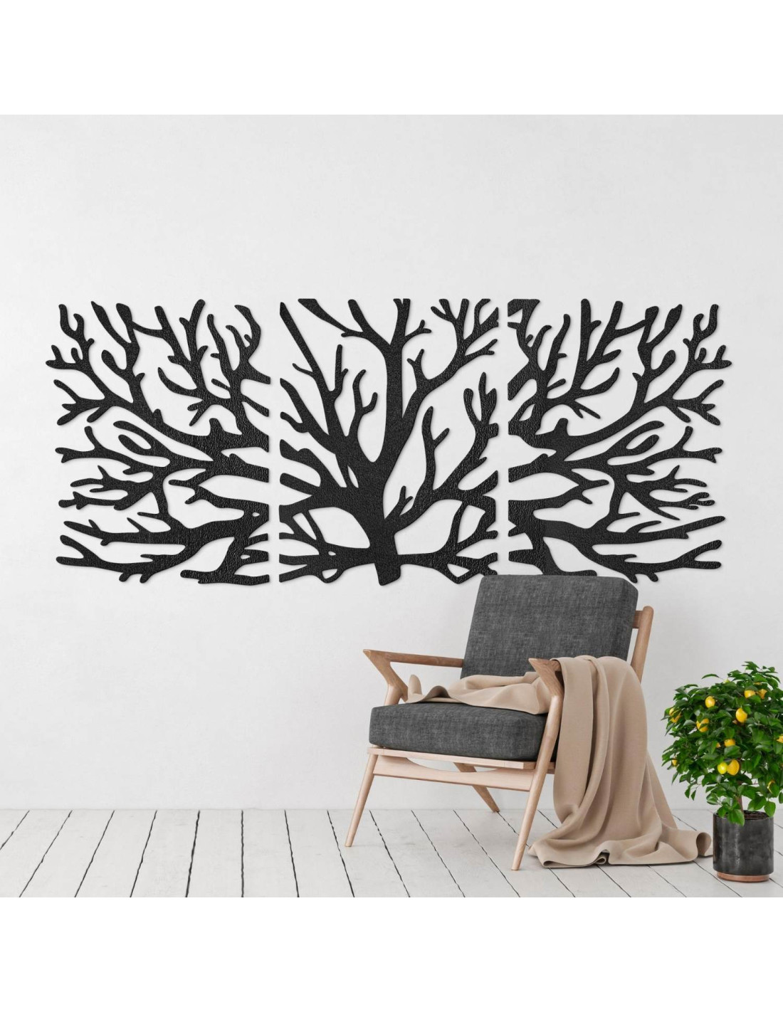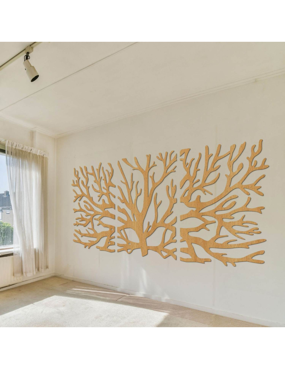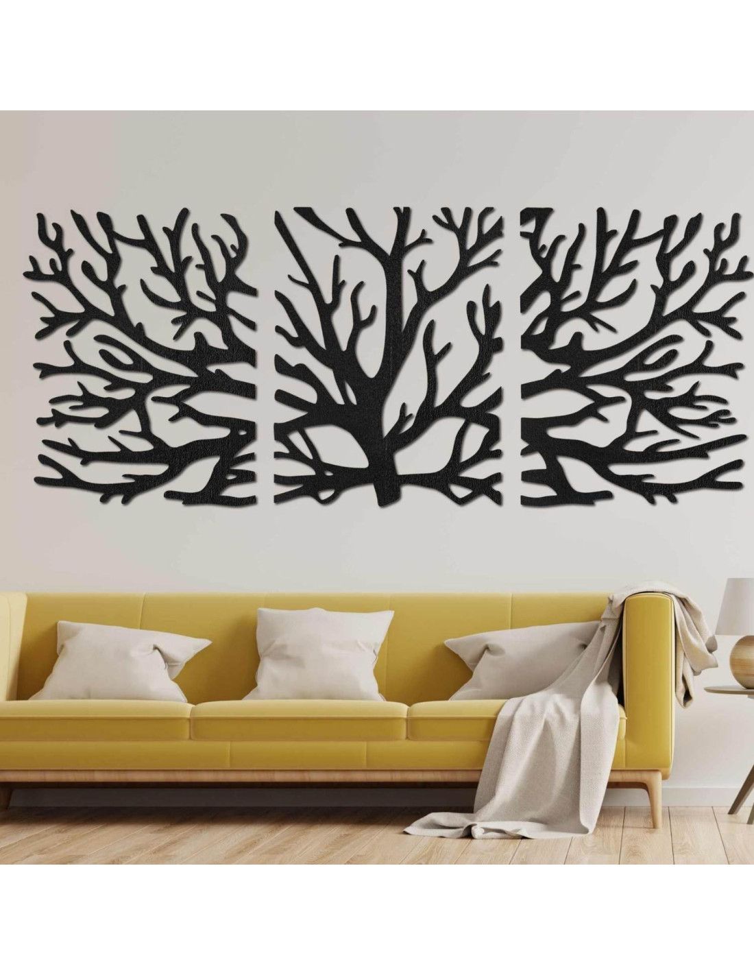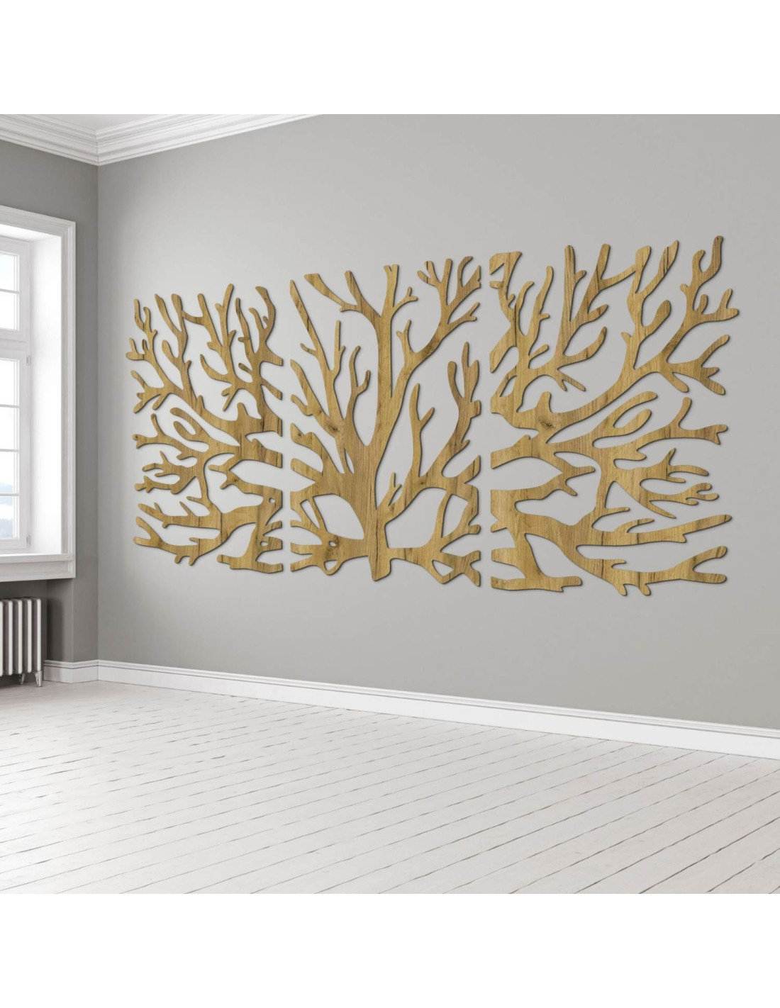 Entdecken Sie ein dreiteiliges Holzbild mit dem Motiv des Lebensbaums – eine harmonische Kombination aus modernem Design , natürlicher Symbolik und künstlerischer Eleganz , die Ihrem Interieur einen einzigartigen Charakter verleiht.