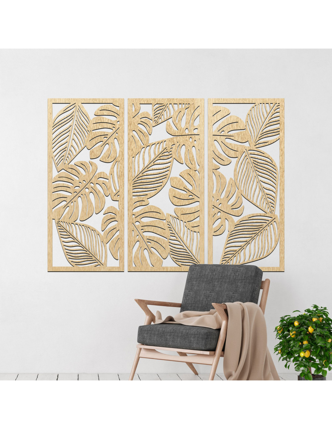 Entdecken Sie die Schönheit der Natur mit unserem dreiteiligen Monstera-Gemälde aus Holz. Dieses einzigartige Kunstwerk ist eine Bereicherung für jedes Interieur , egal ob modern oder klassisch. Sein detailreiches Design und die ausdrucksstarke Holzmaserung erzeugen einen wunderschönen Kontrast und verleihen dem Raum Tiefe.