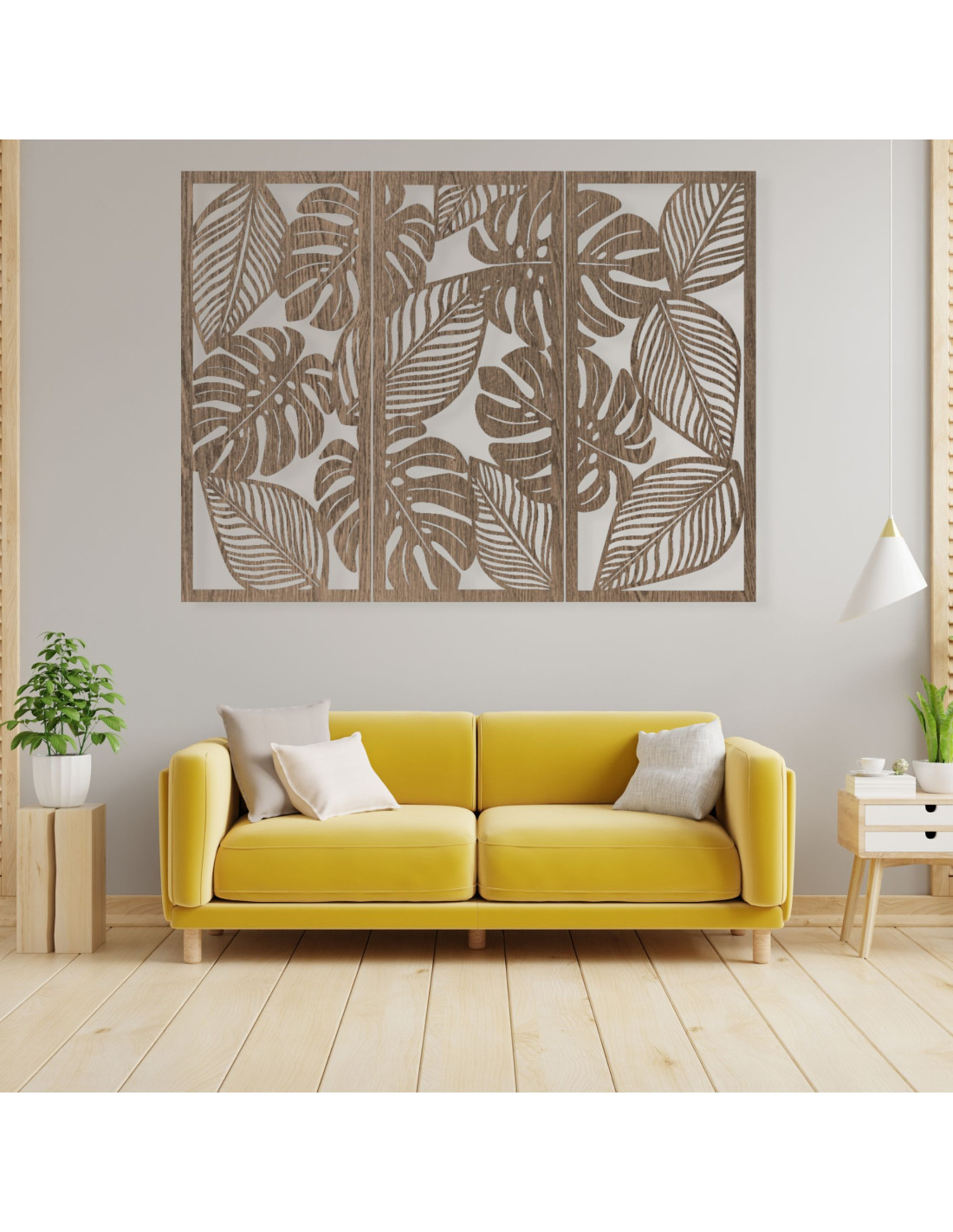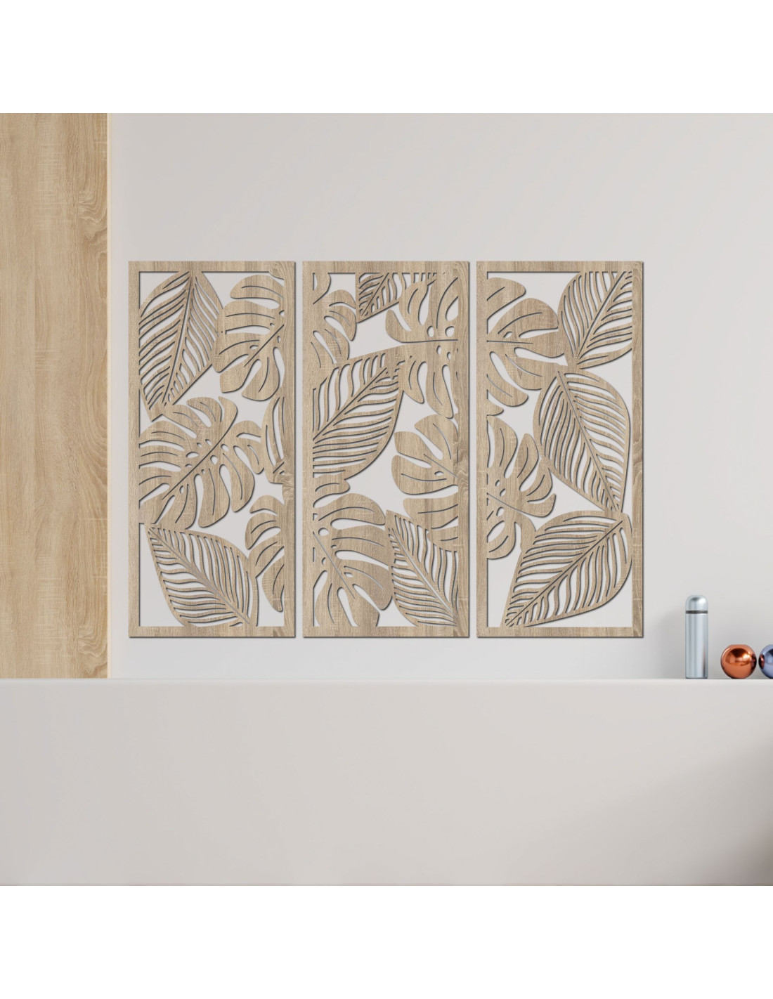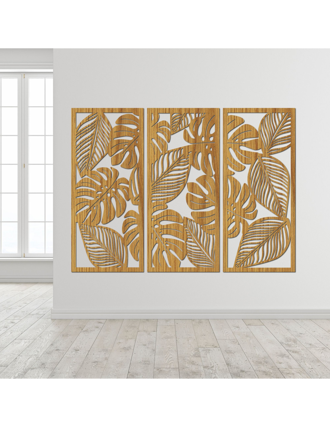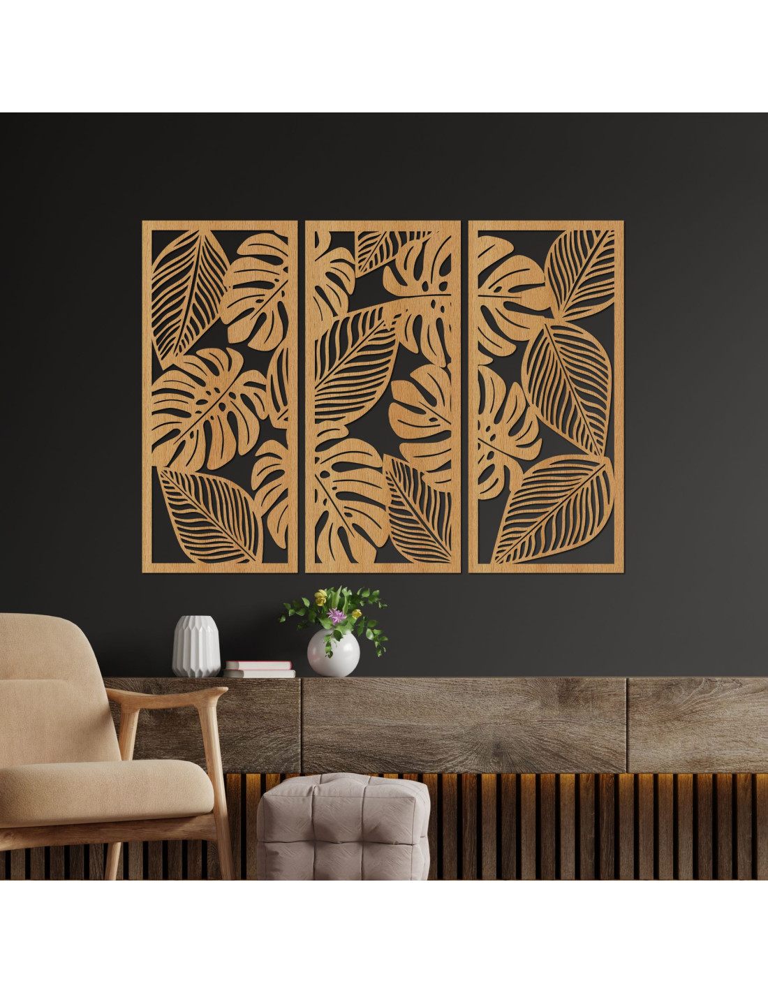 Erleben Sie natürliche Harmonie mit unserem dreiteiligen Monstera-Wandbild aus Holz .