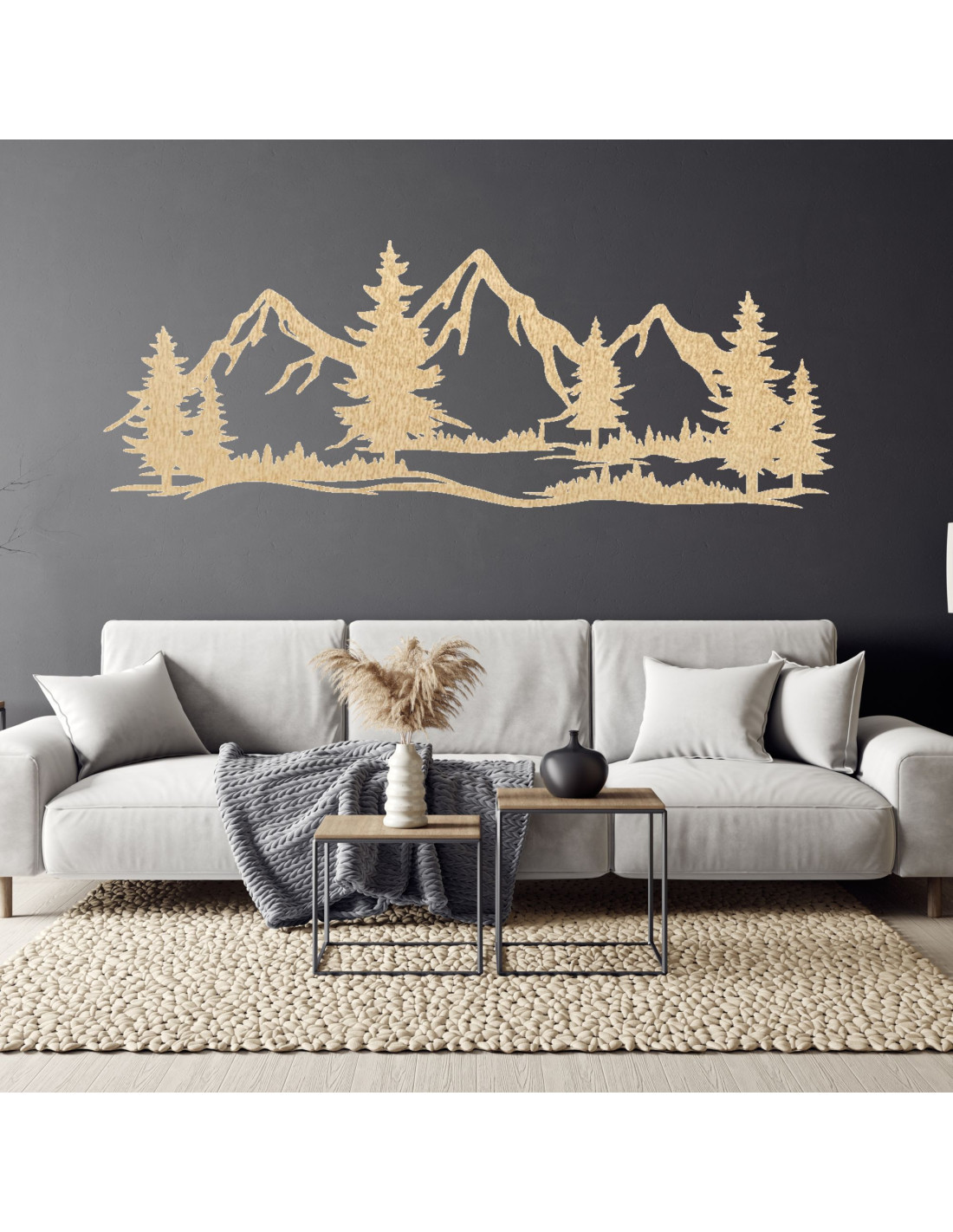 Wanddekoration aus Holz massiv Berge und Wald - MAGNA