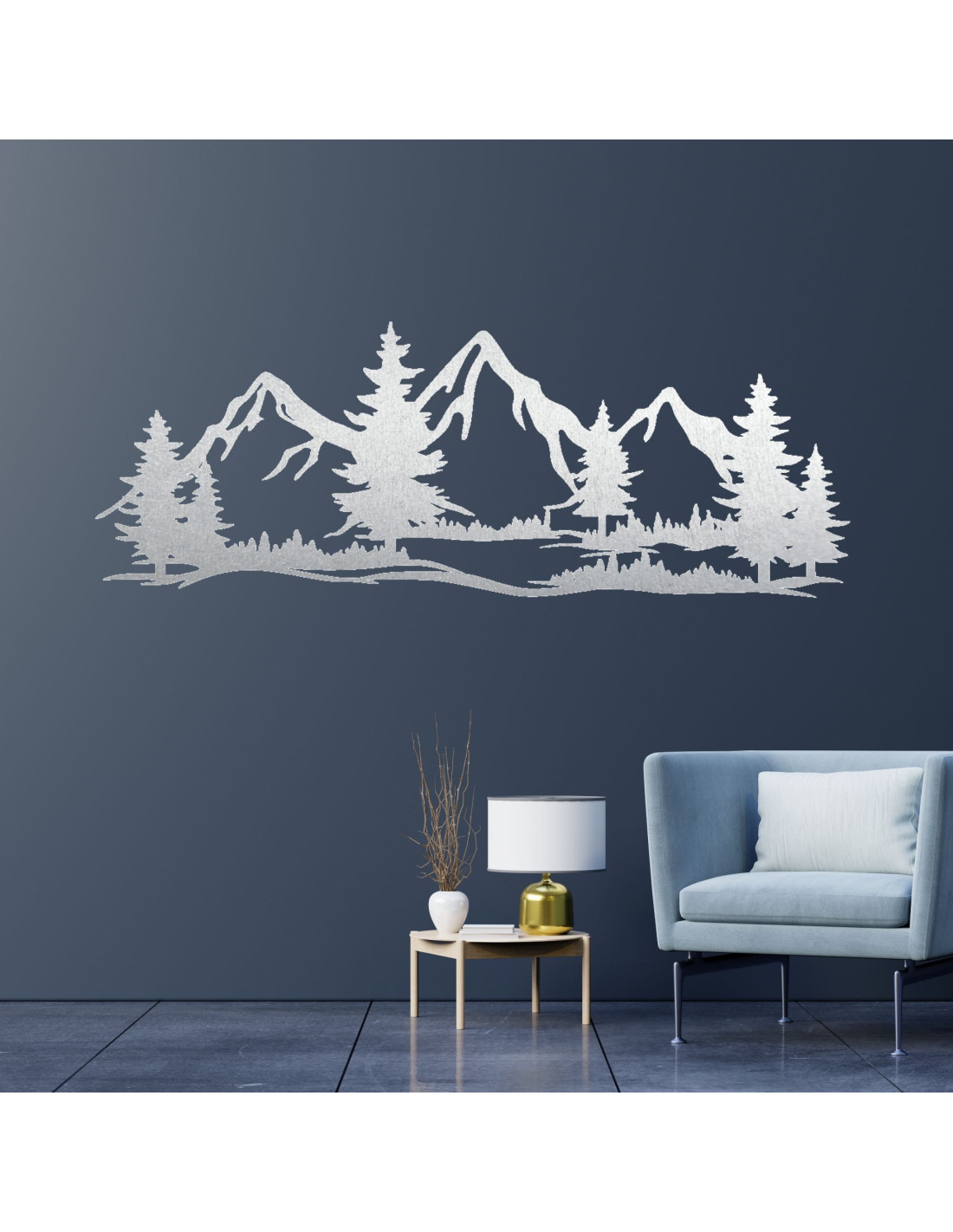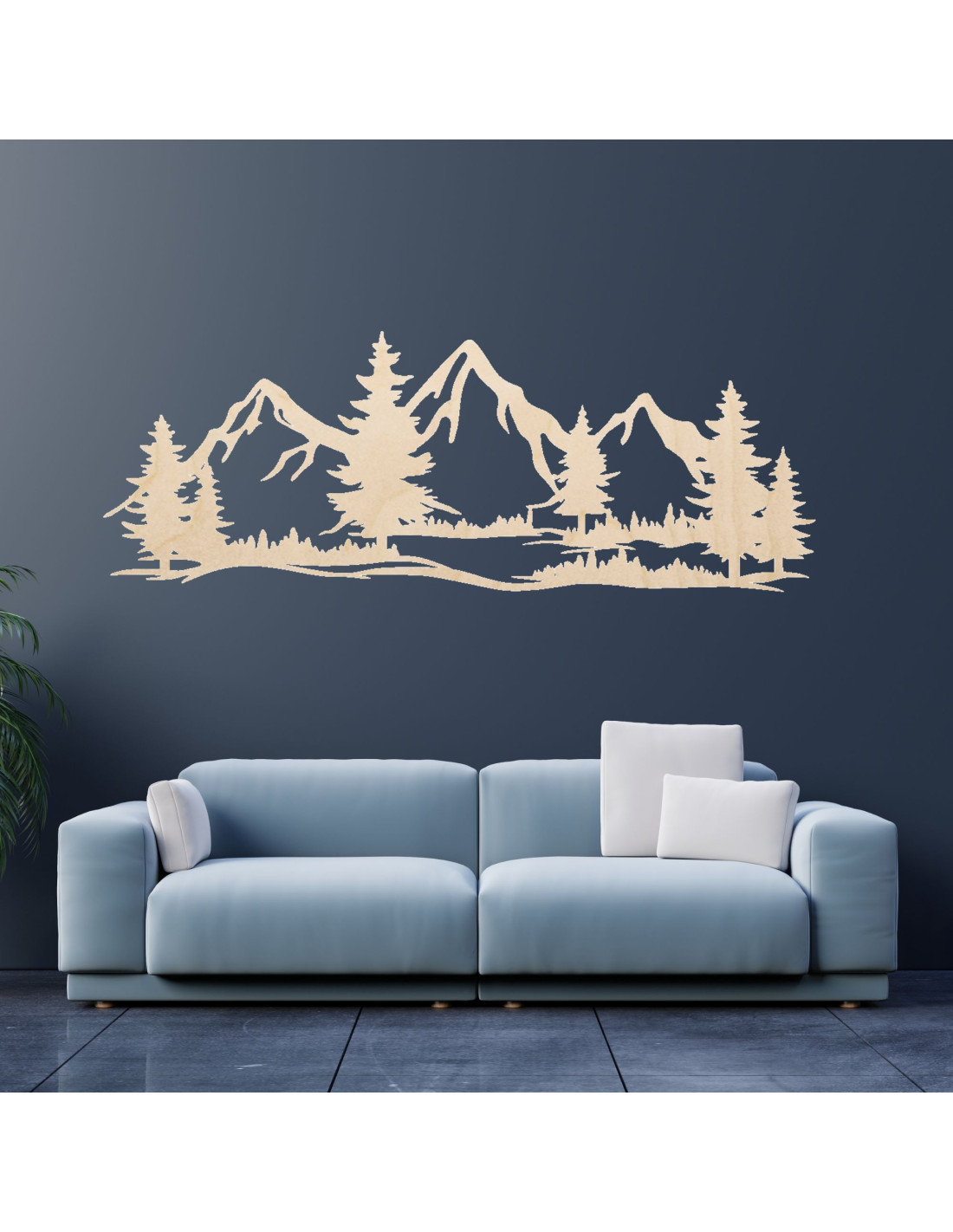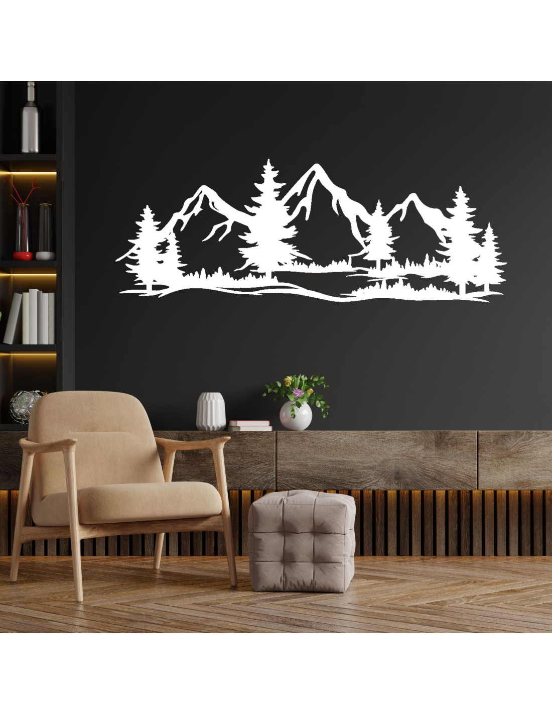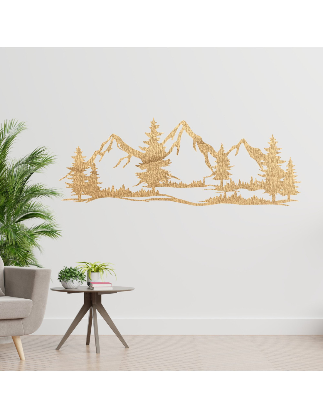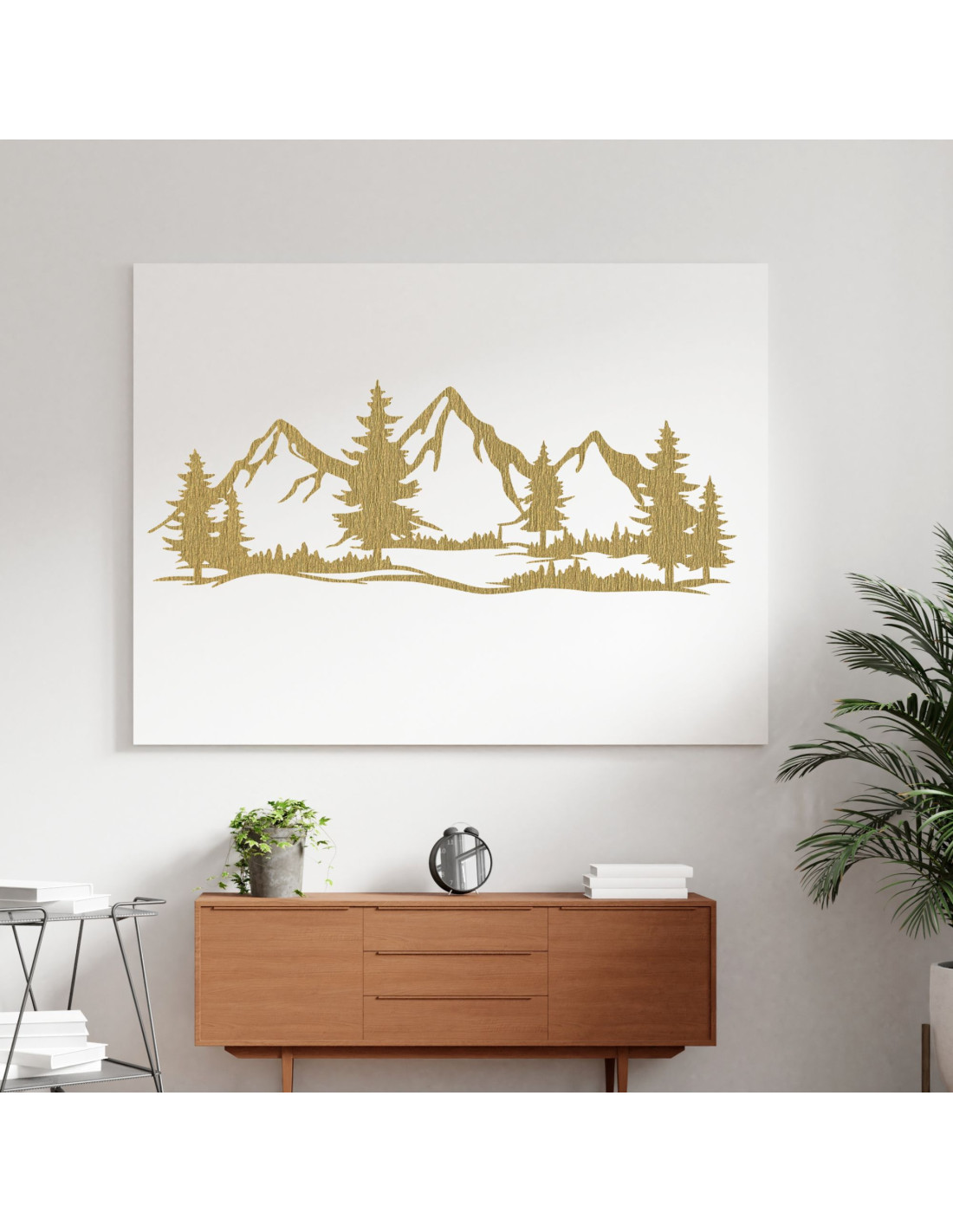 Wanddekoration aus Holz massiv Berge und Wald - MAGNA