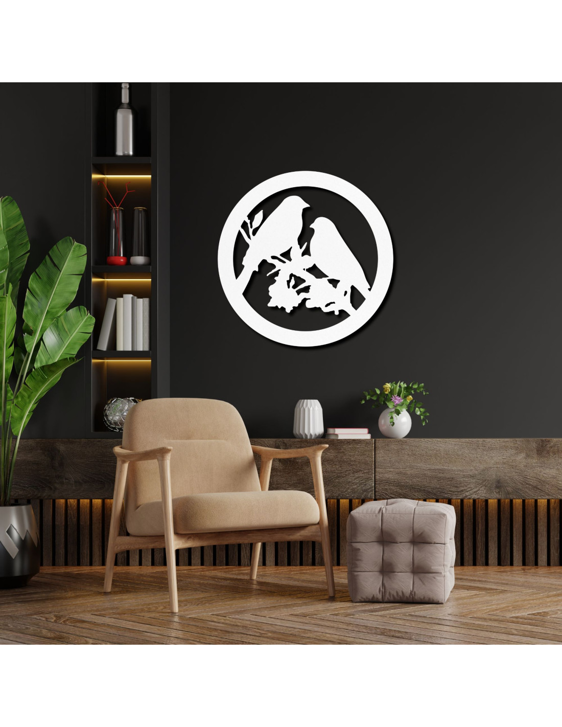 Holzwandbild Vögel auf einem Ast - BIERDO