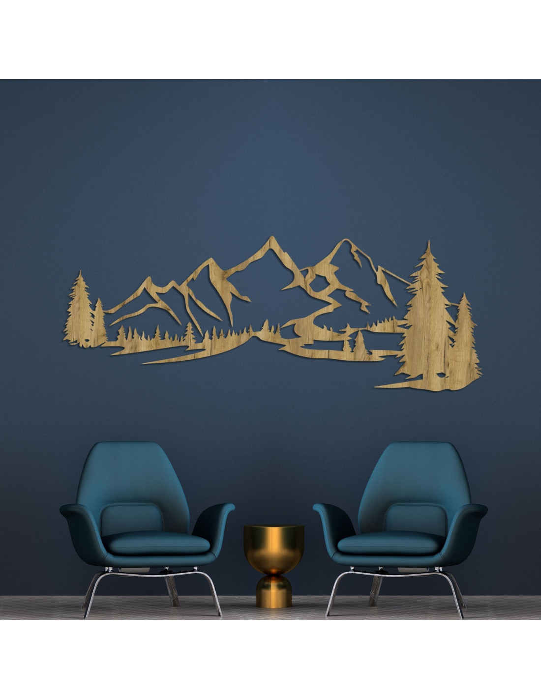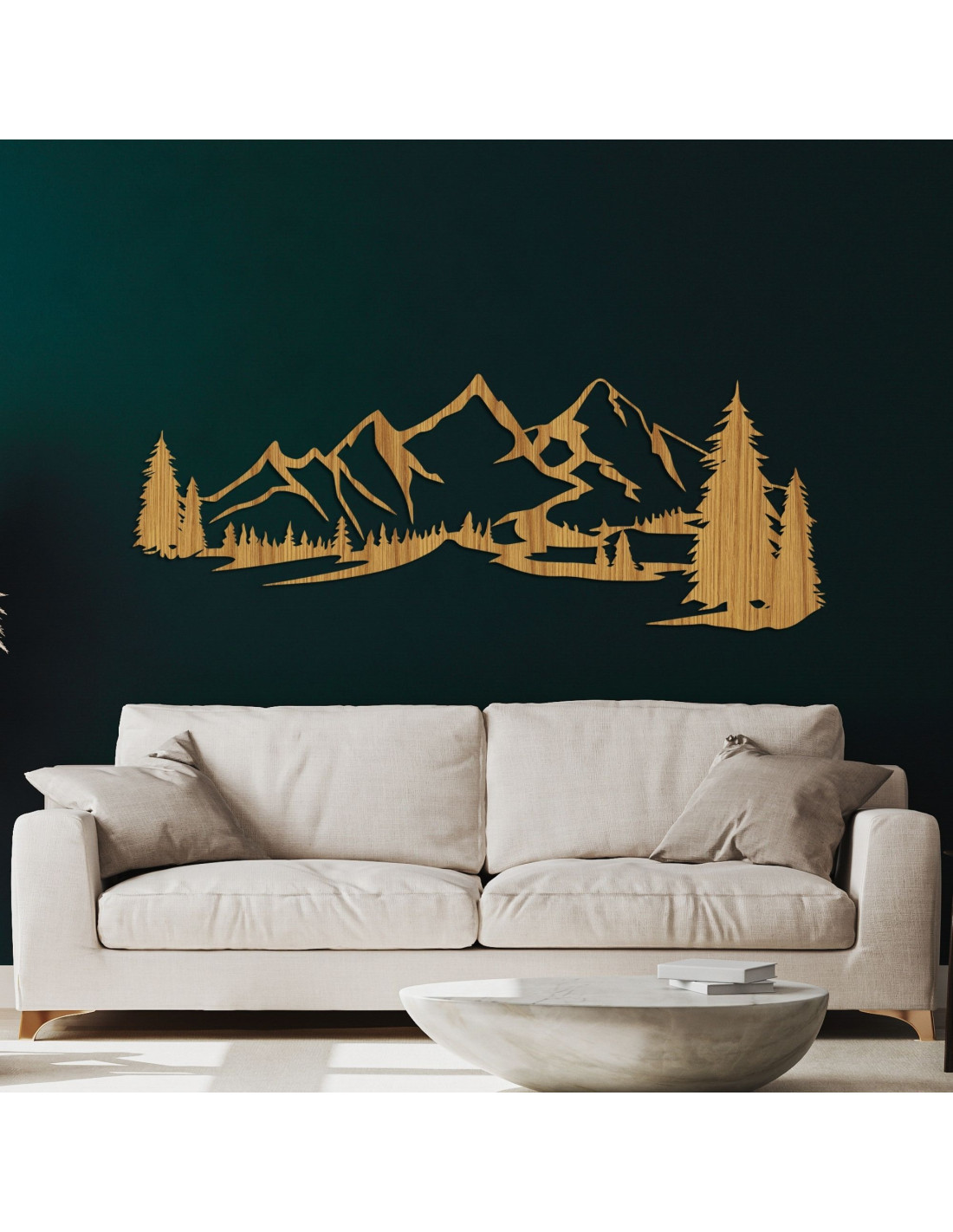 Eine Wanddekoration aus Holz mit Berglandschaftsmotiv ist ein modernes und elegantes Accessoire, das jedem Interieur eine friedliche Note der Natur verleiht.