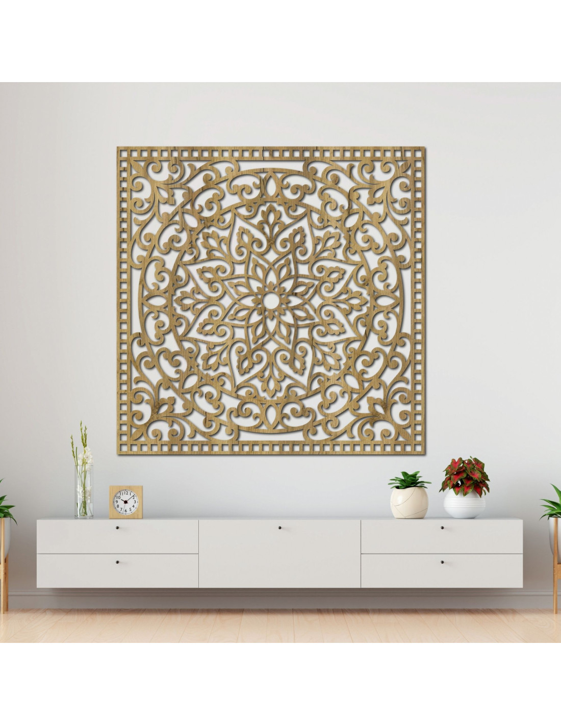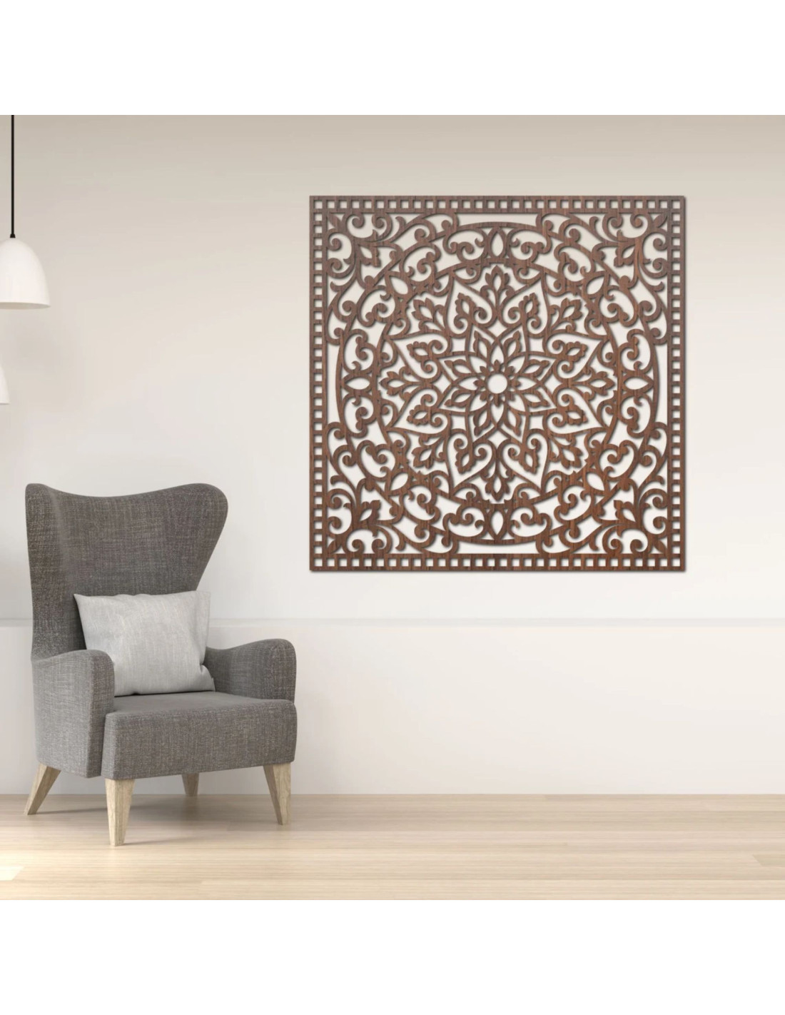 Quadratische Wandmalerei aus Holz – orientalisches Mandala
