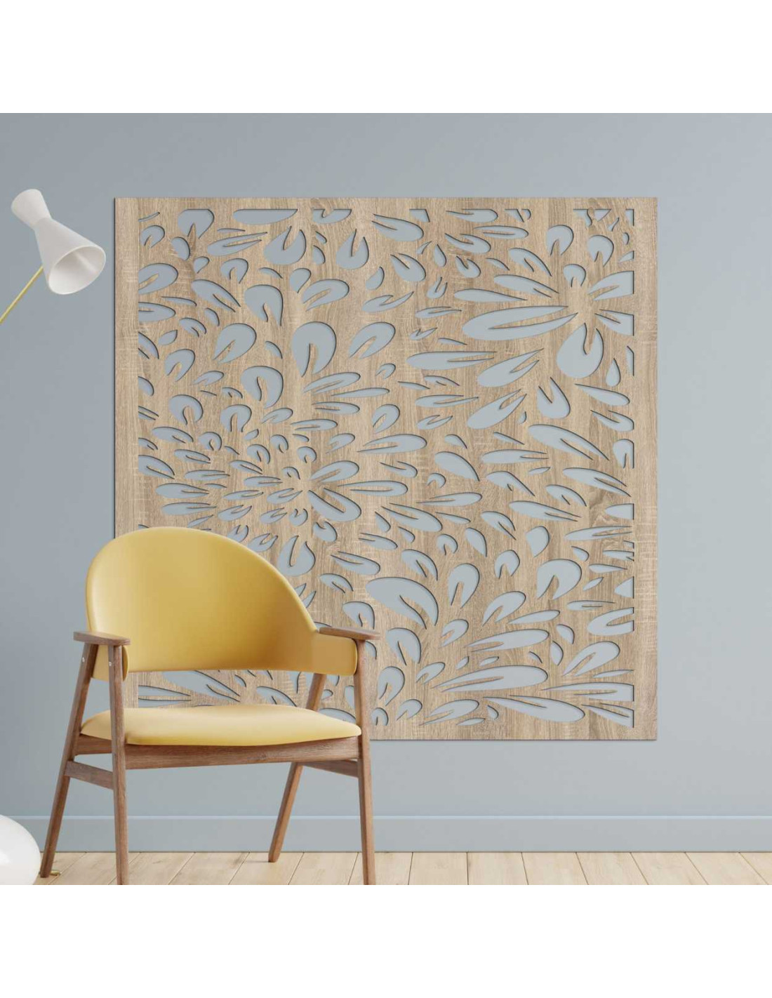 Quadratische, geschnitzte Wandplatte mit Blumendesign | BOMB
