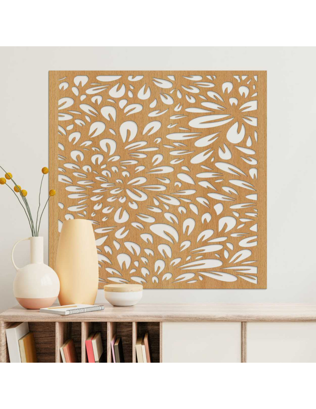 Quadratische, geschnitzte Wandplatte mit Blumendesign | BOMB