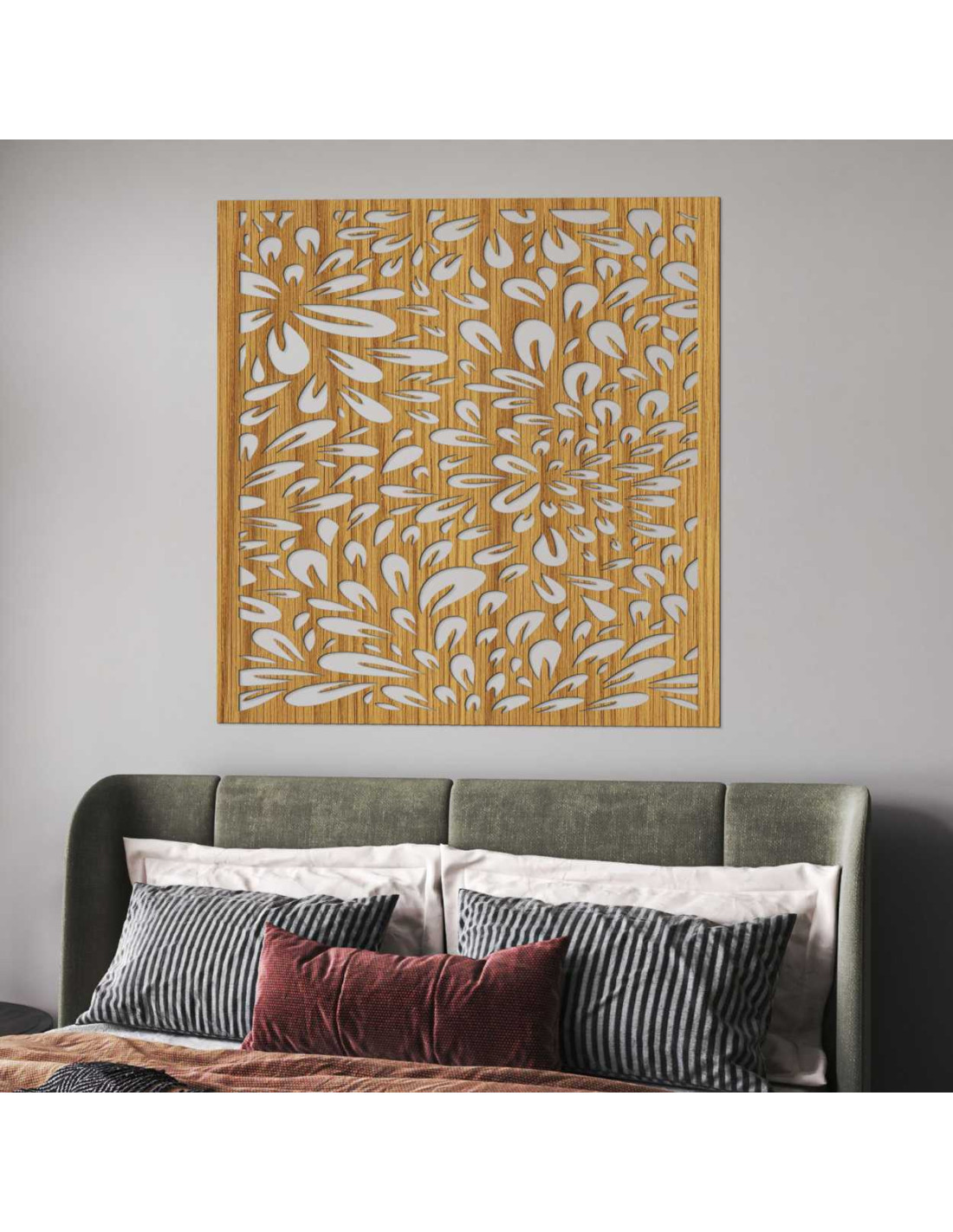 Das lasergeschnittene Motiv verleiht dem Raum natürliche Harmonie und ästhetische Ausgewogenheit.