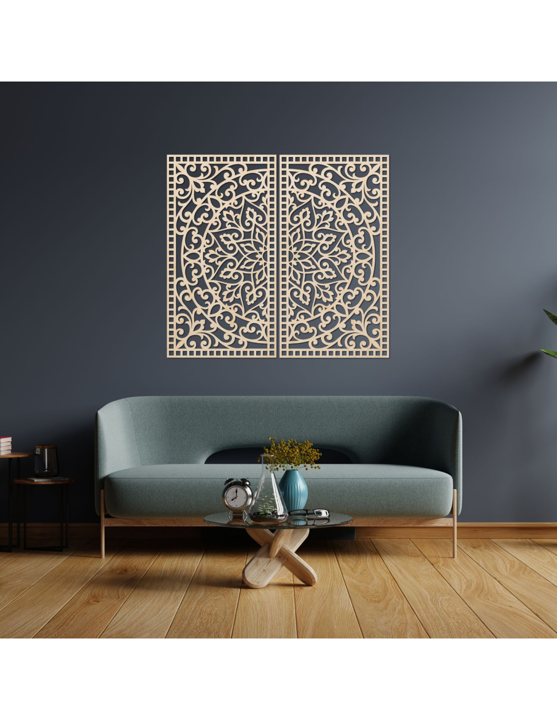 Mandala-Gemälde aus Holz, zweiteilig – Geschnitzte Wanddekoration – FLOUFER