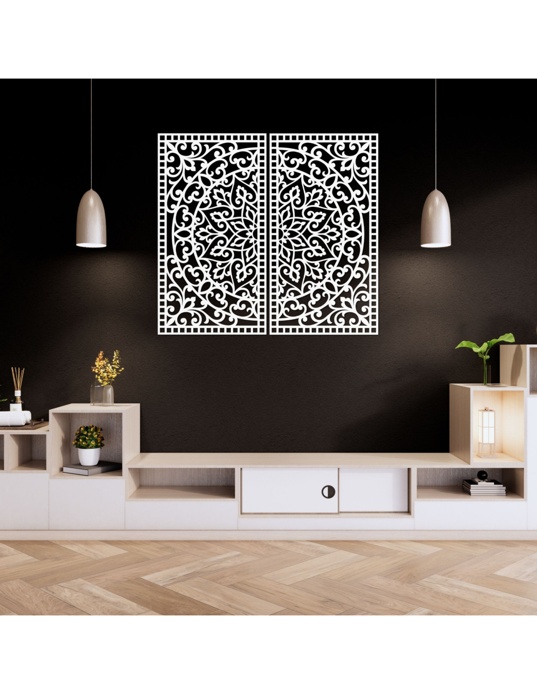 Mandala-Gemälde aus Holz, zweiteilig – Geschnitzte Wanddekoration – FLOUFER