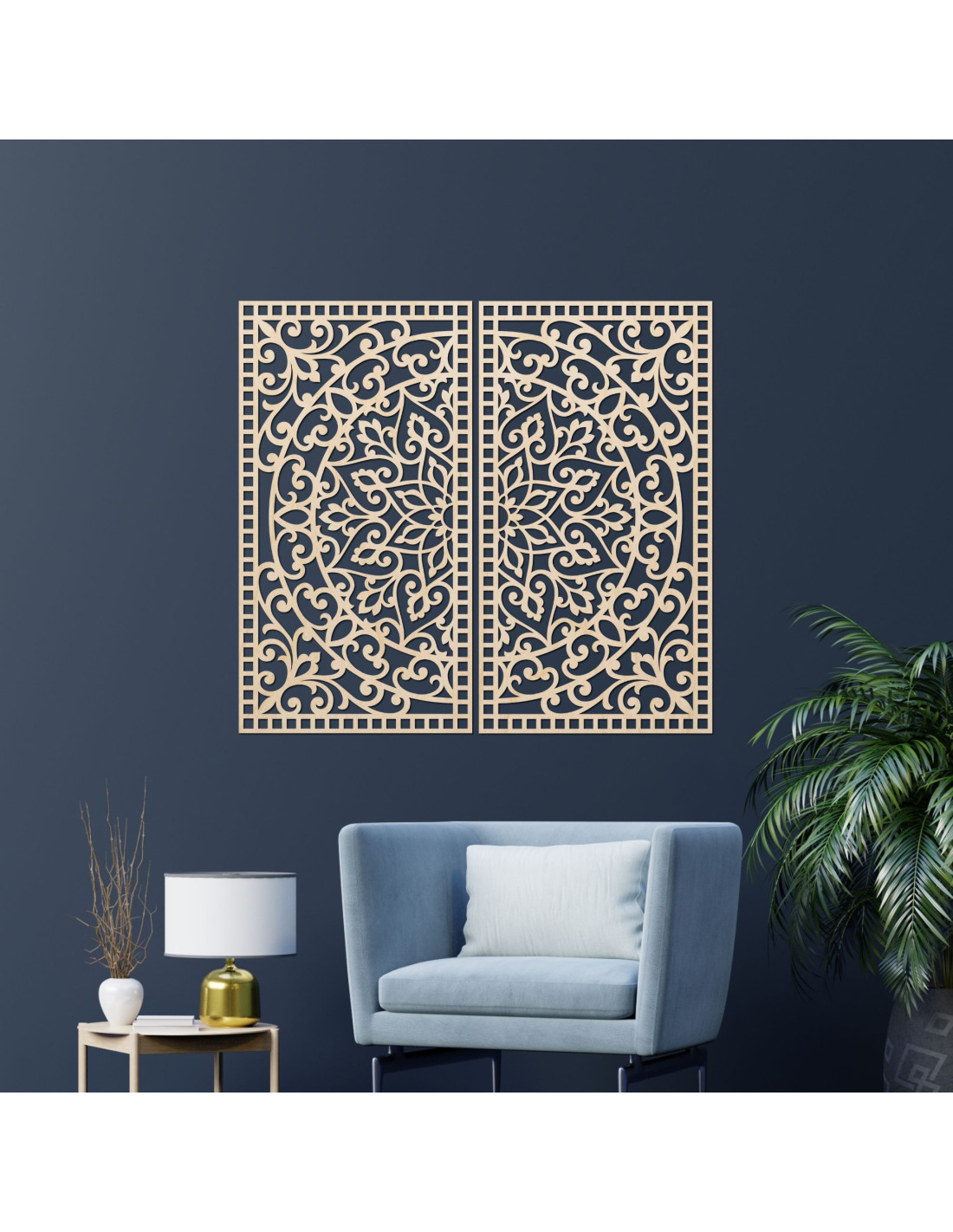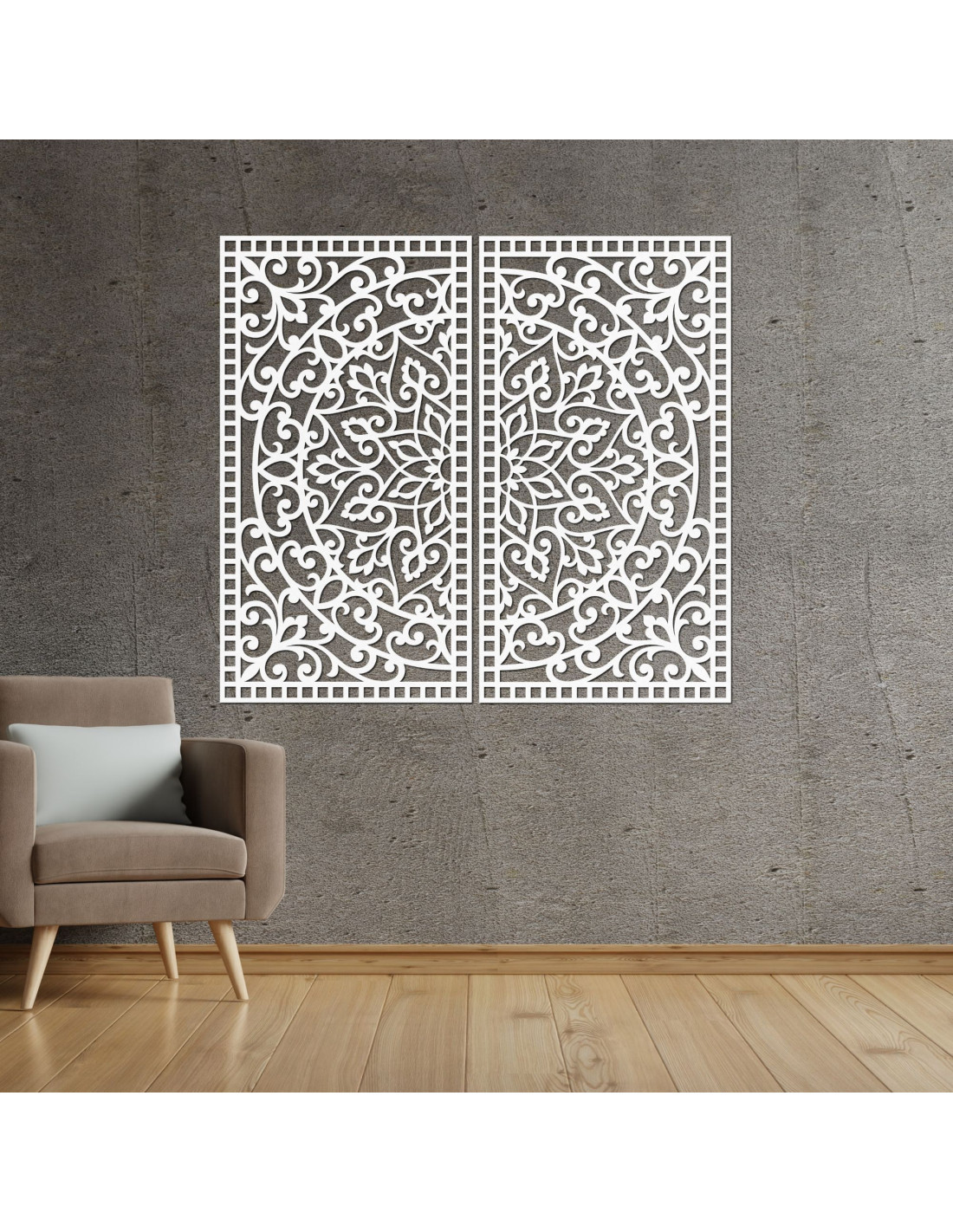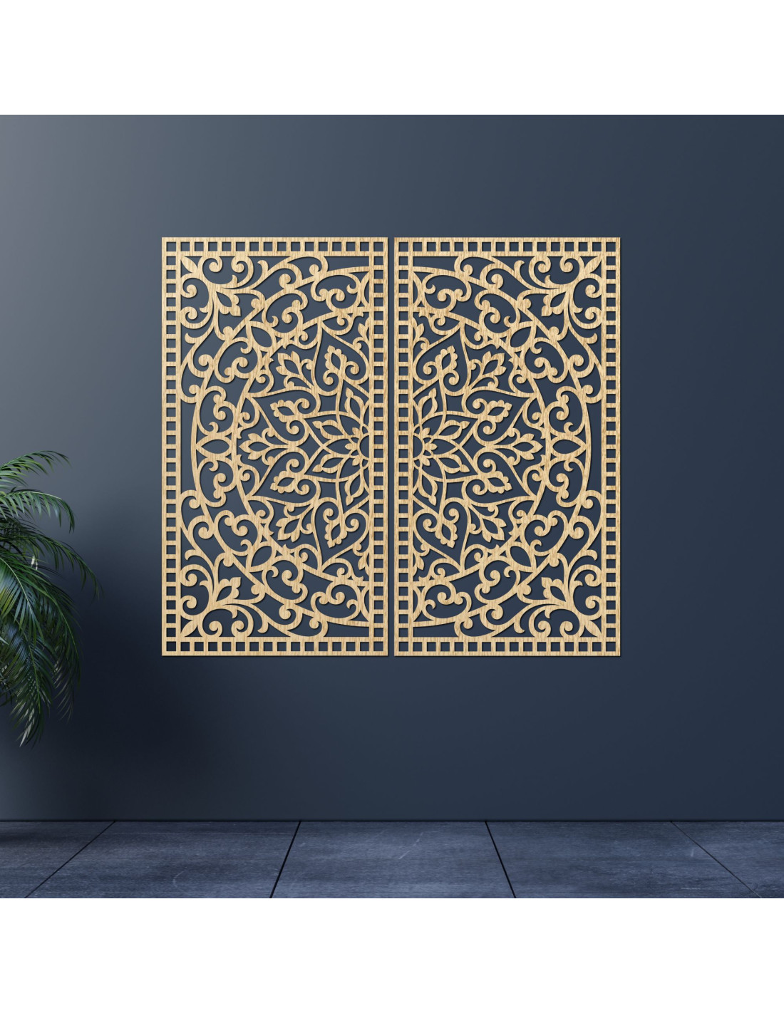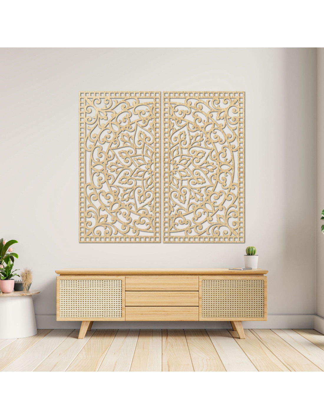 Mandala-Gemälde aus Holz, zweiteilig – Geschnitzte Wanddekoration – FLOUFER