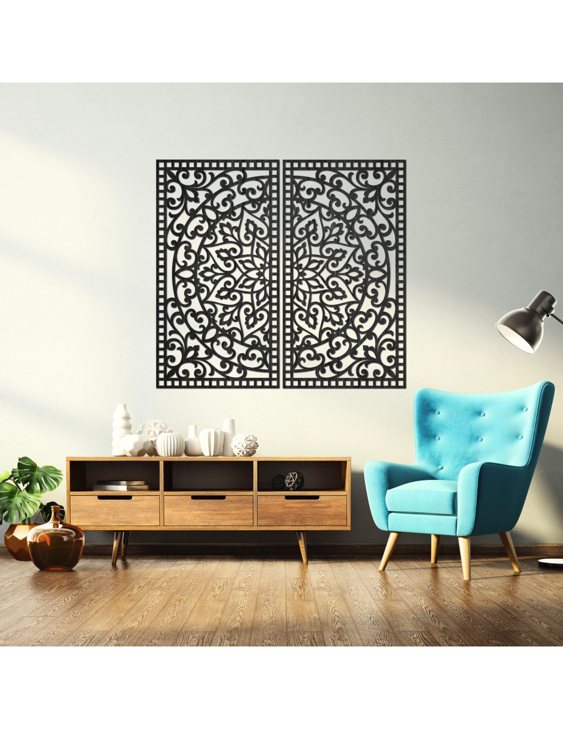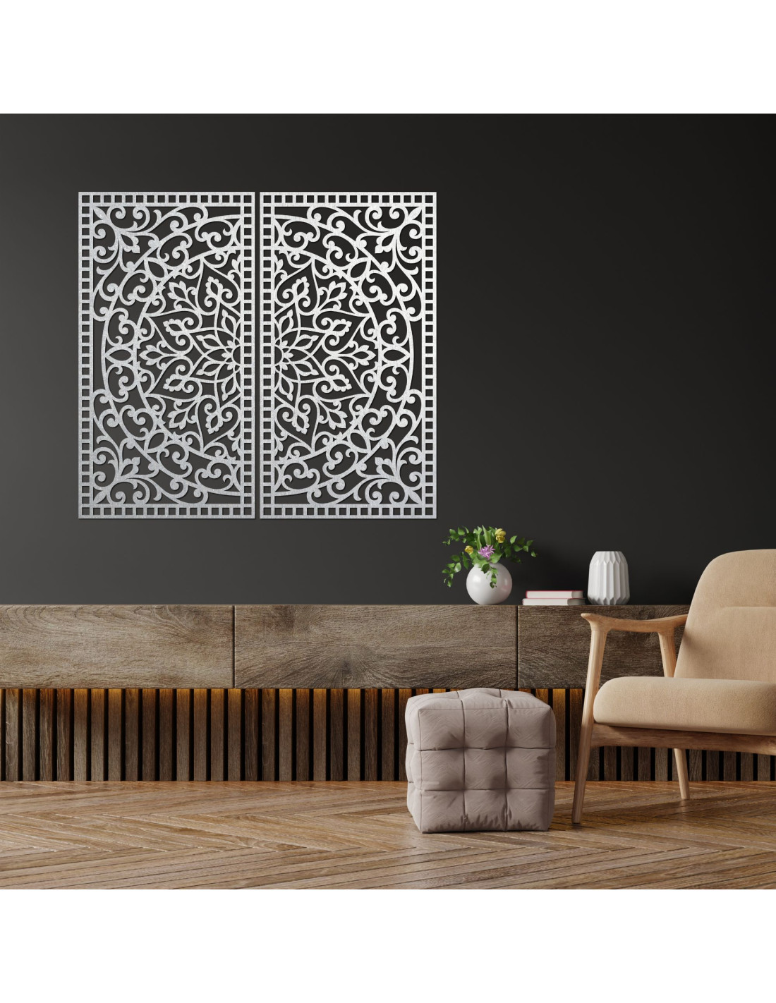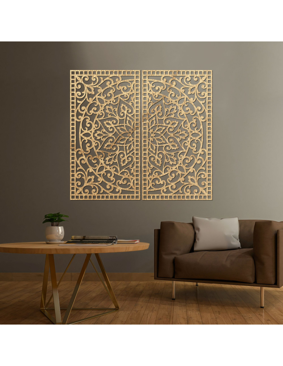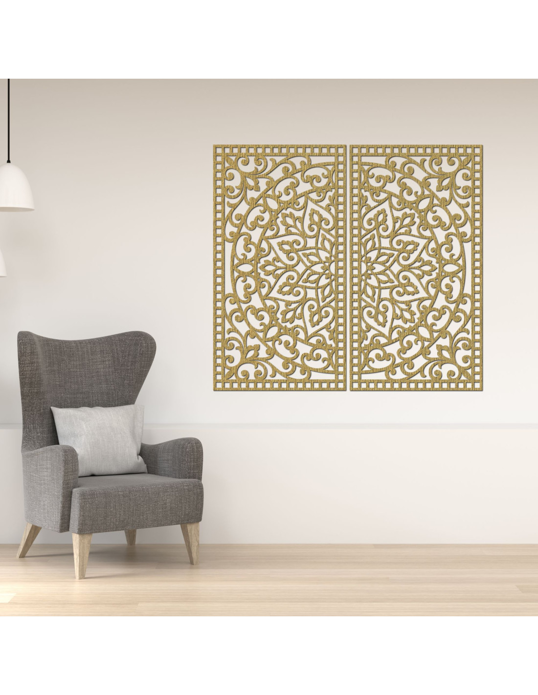 Mandala-Gemälde aus Holz, zweiteilig – Geschnitzte Wanddekoration – FLOUFER