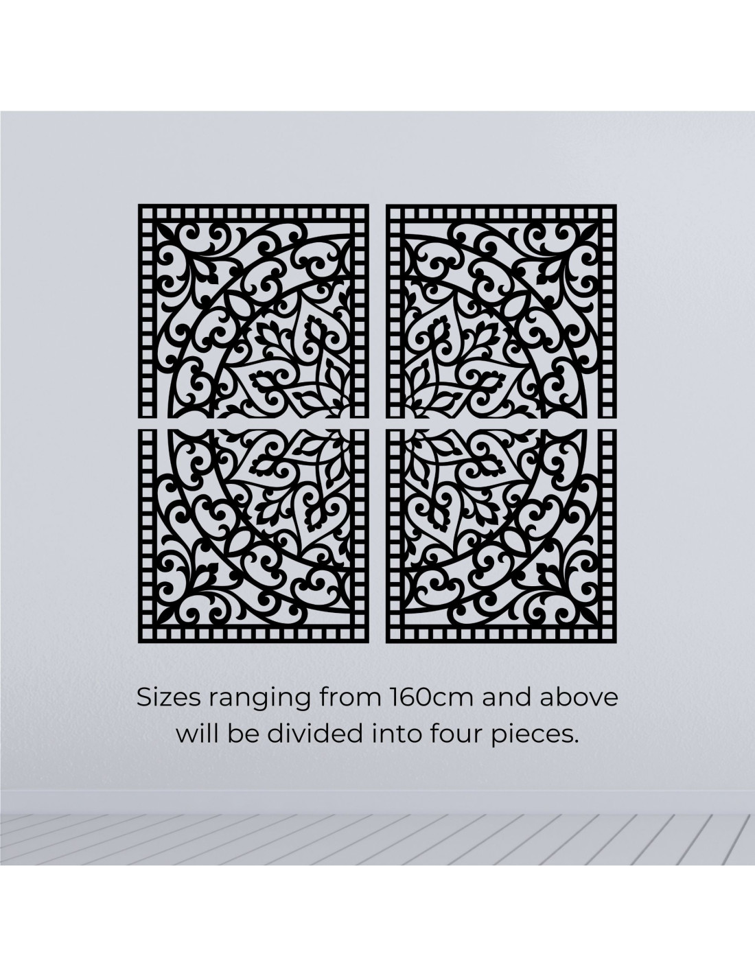 Das Design dieser Wanddekoration basiert auf aufwendigen , ineinandergreifenden Mustern, die ein Gefühl von Luxus und Eleganz hervorrufen .
