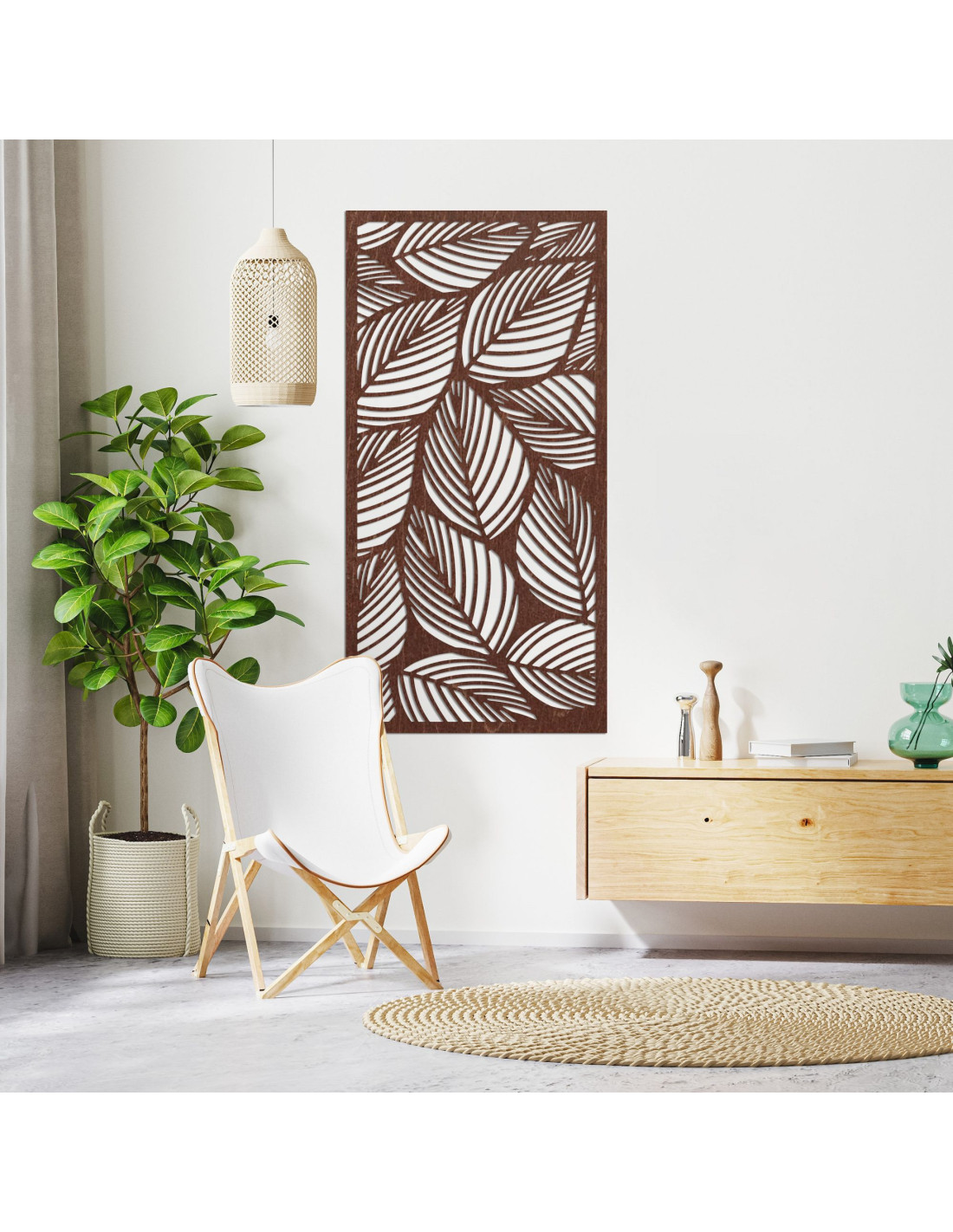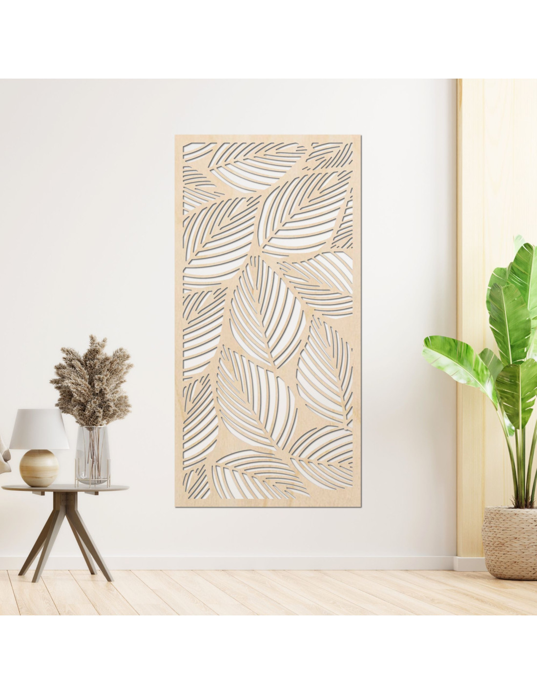 Holzdekorationen mit Blattmuster symbolisieren Wachstum, Frieden und die Verbundenheit mit der Natur.