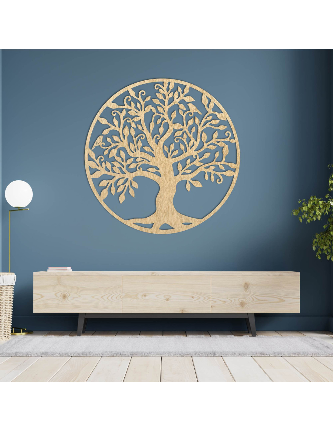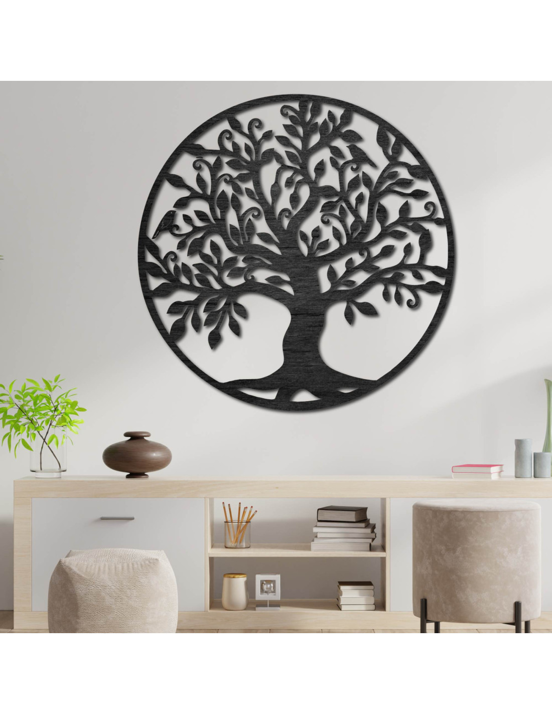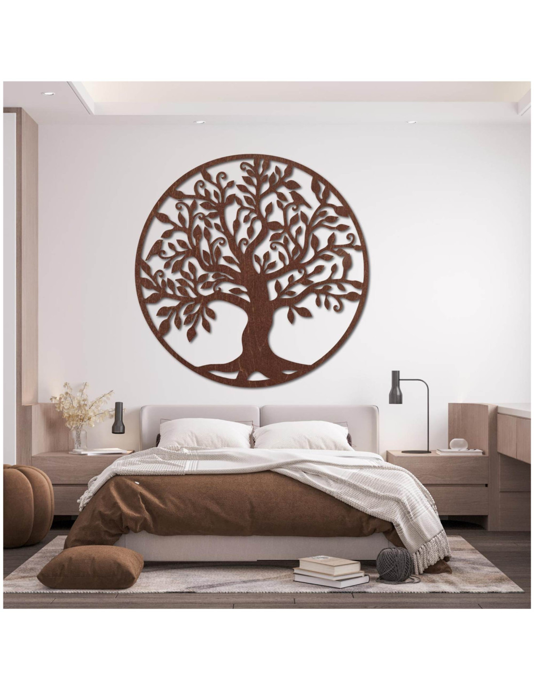 Die hölzerne Wanddekoration in Form des Lebensbaums ist stilvoll und elegant – ein Holzbild, das jedes Interieur belebt und ihm natürliche Harmonie verleiht.
