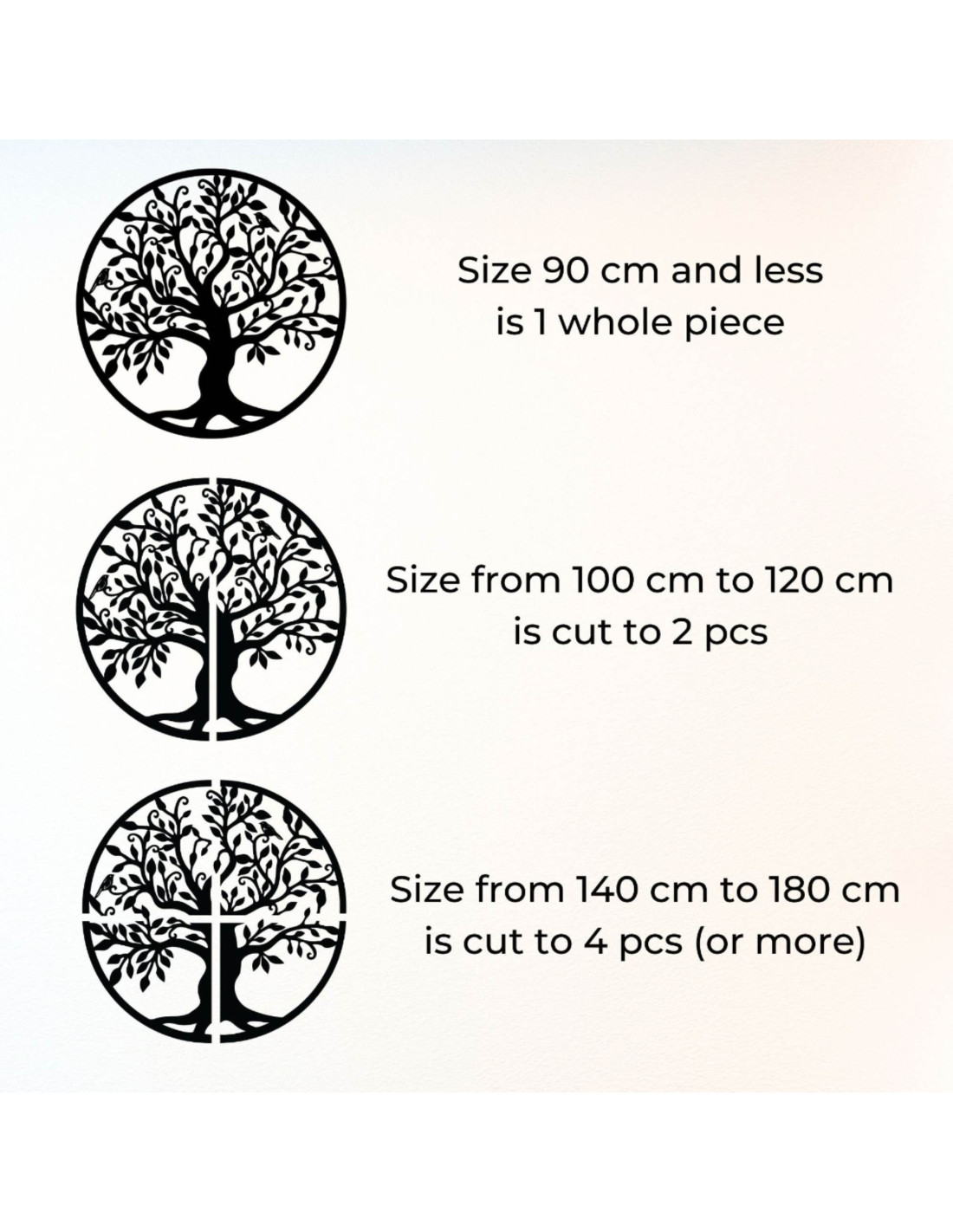 - Verschiedene Größen – von 30 bis 180 cm – sodass die Dekoration sowohl an kleine als auch an große Wände passt.