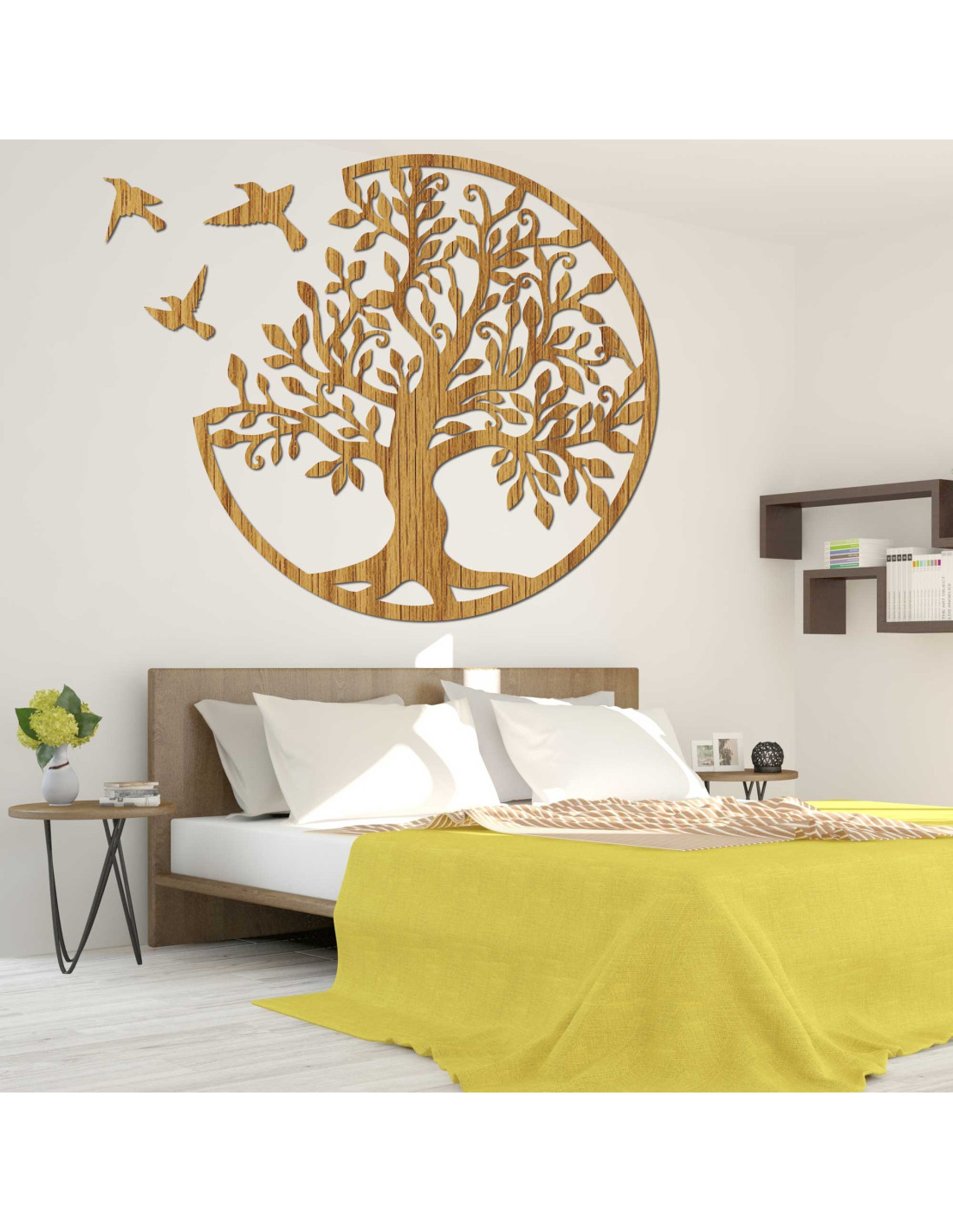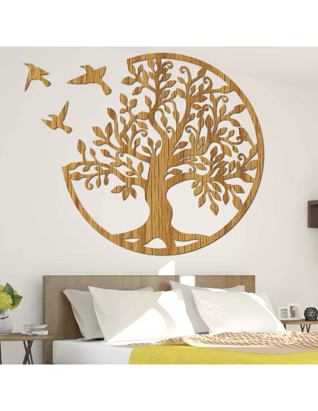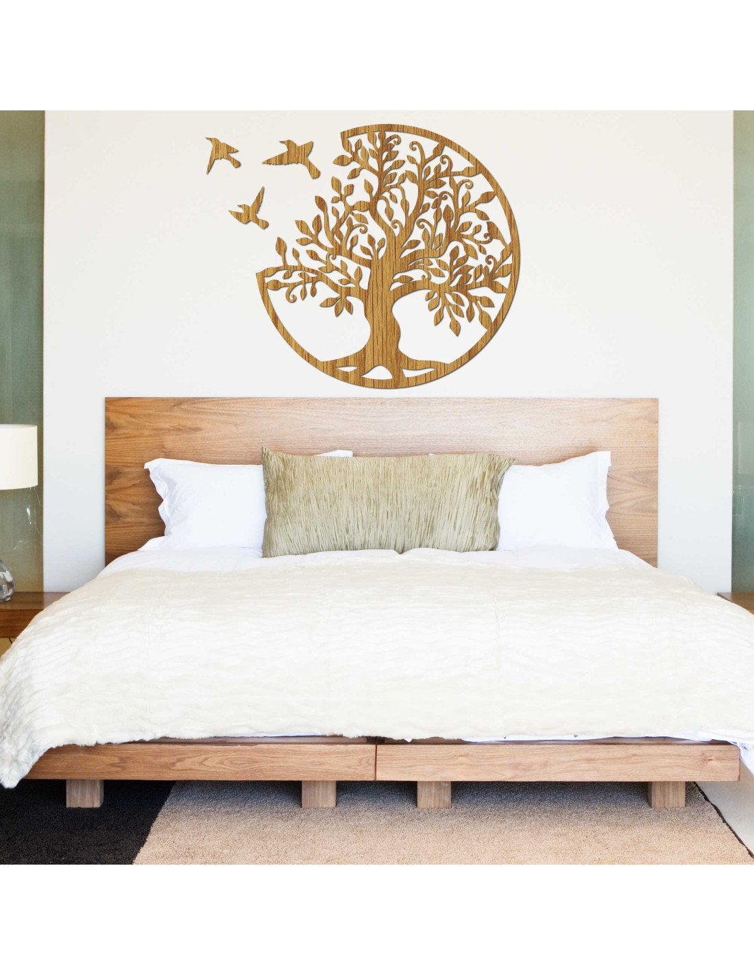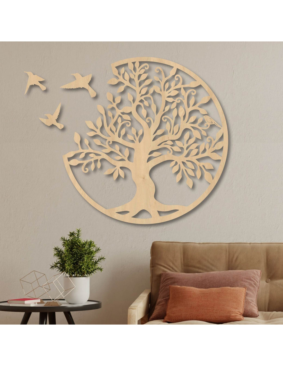 Elegante Wanddekoration aus Holz in Form eines Lebensbaums mit Vögeln bringt Harmonie und natürliche Schönheit in Ihr Zuhause. Dieses einzigartige Designbild aus Sperrholz wird mit präziser Lasertechnologie geschnitzt und anschließend von Hand nachbearbeitet , um eine perfekte Optik und ein hochwertiges Finish zu erzielen.