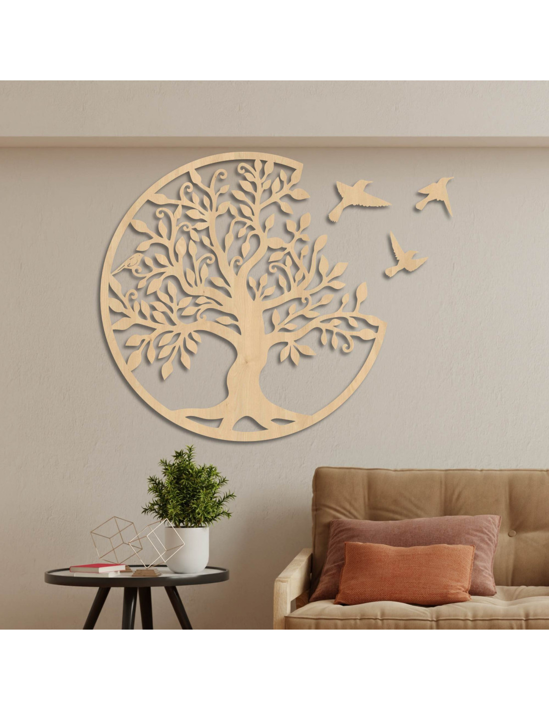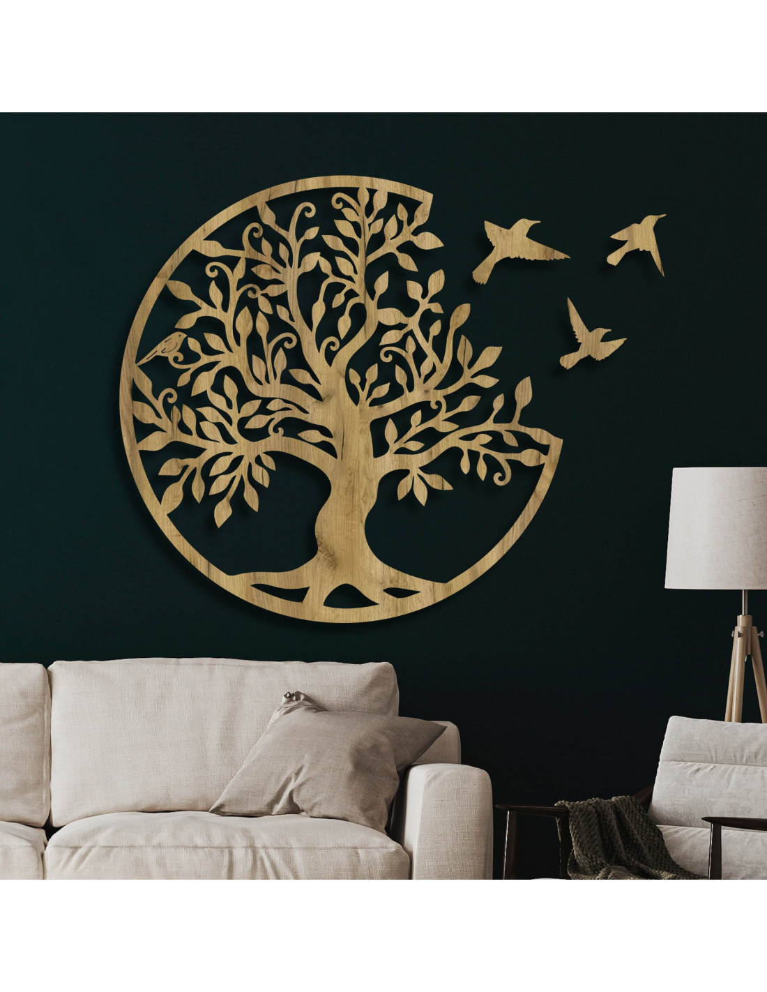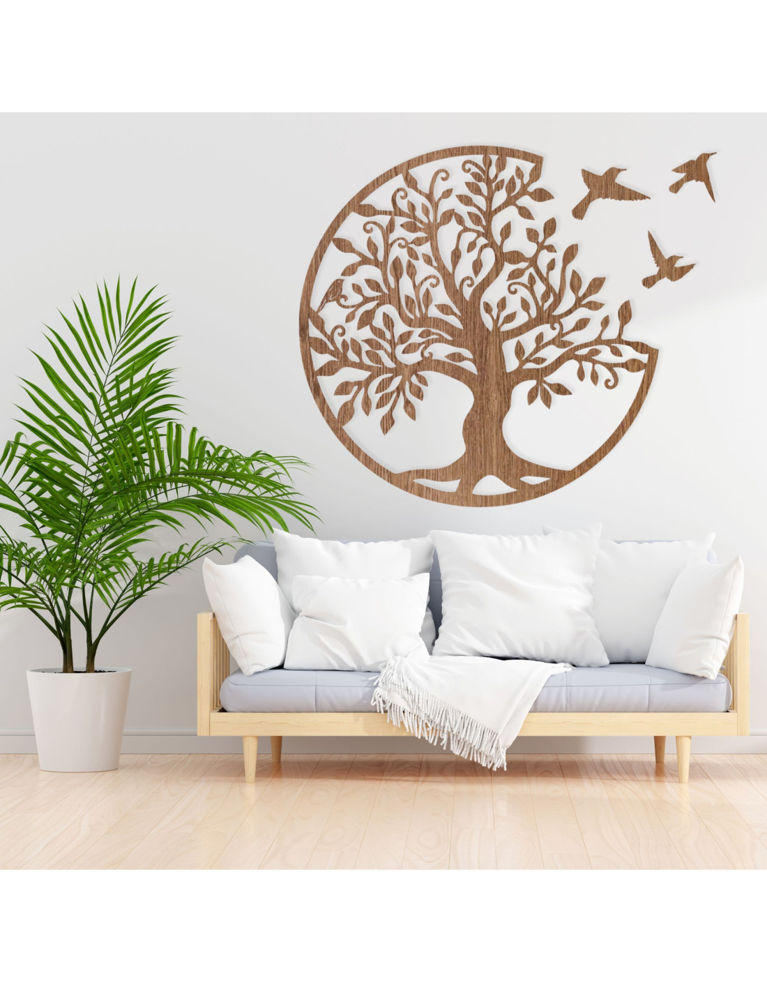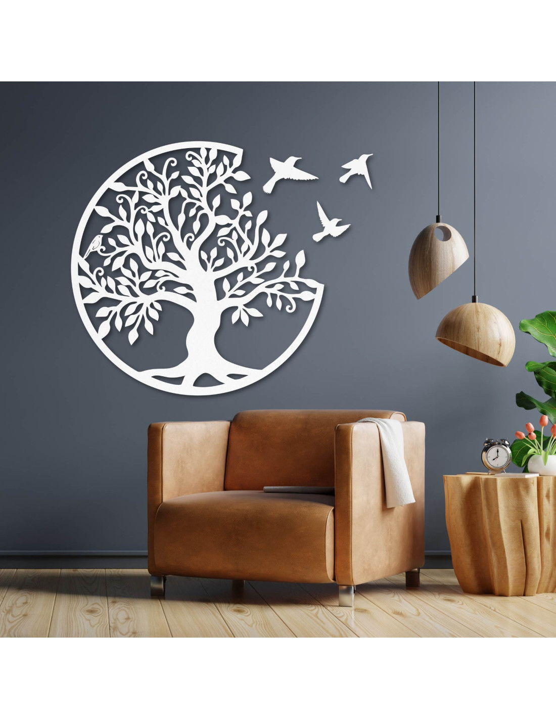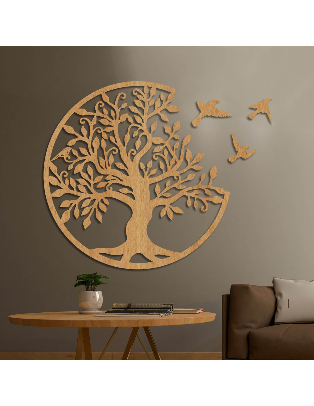 Lebensbäume aus Holz mit fliegenden Vögeln sind mehr als nur eine Wanddekoration – sie symbolisieren Harmonie, Stabilität und die Stärke familiärer Bindungen . Dieses elegante Accessoire bringt positive Energie und ein Gefühl der Ausgeglichenheit in Ihr Zuhause und verleiht ihm gleichzeitig natürliche Schönheit und eine einzigartige Geschichte . So erhält der Raum seinen ganz eigenen Charakter und Stil. Dieser Lebensbaum aus Holz eignet sich ideal für Wohnzimmer, Schlafzimmer, Flure oder Büros und ist auch ein originelles Geschenk .