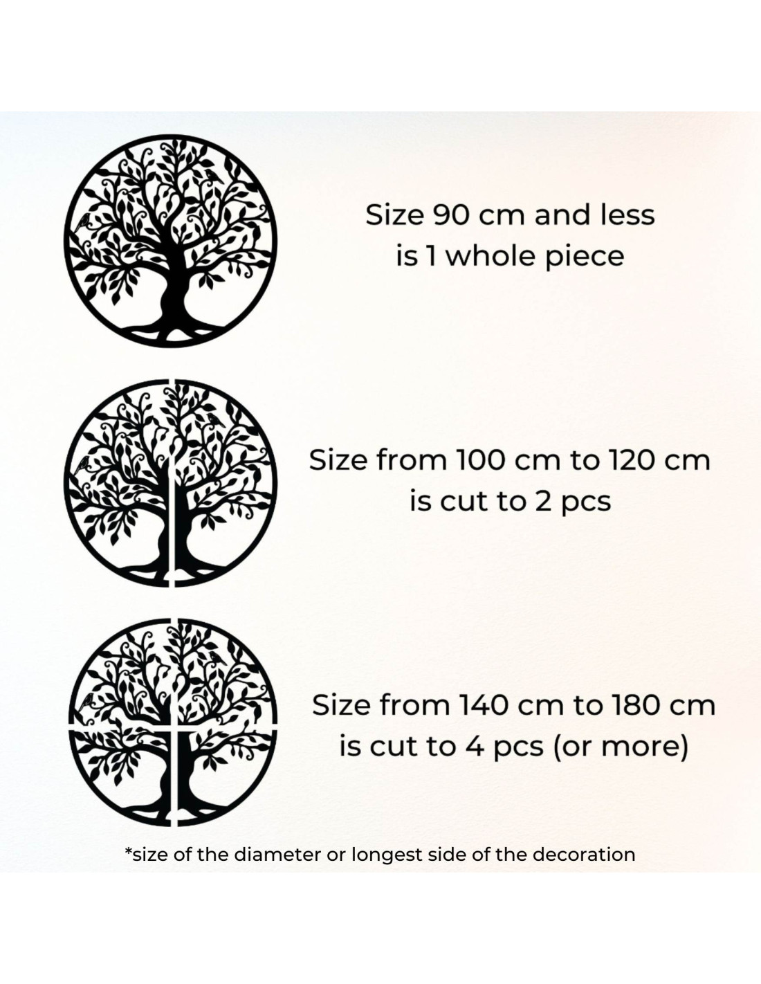 - Von 140 cm bis 180 cm - die Dekoration wird in vier Teile geschnitten