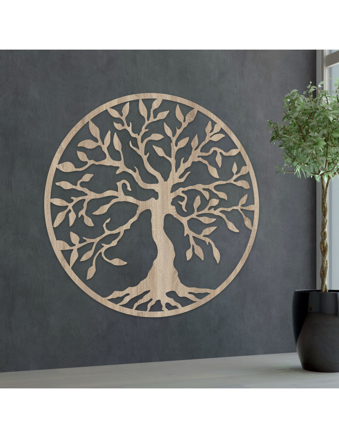Lebensbaum aus Holz – eine elegante Sperrholzdekoration, die Harmonie, Frieden und positive Energie in Ihr Zuhause bringt.