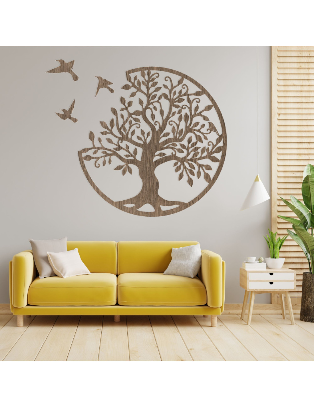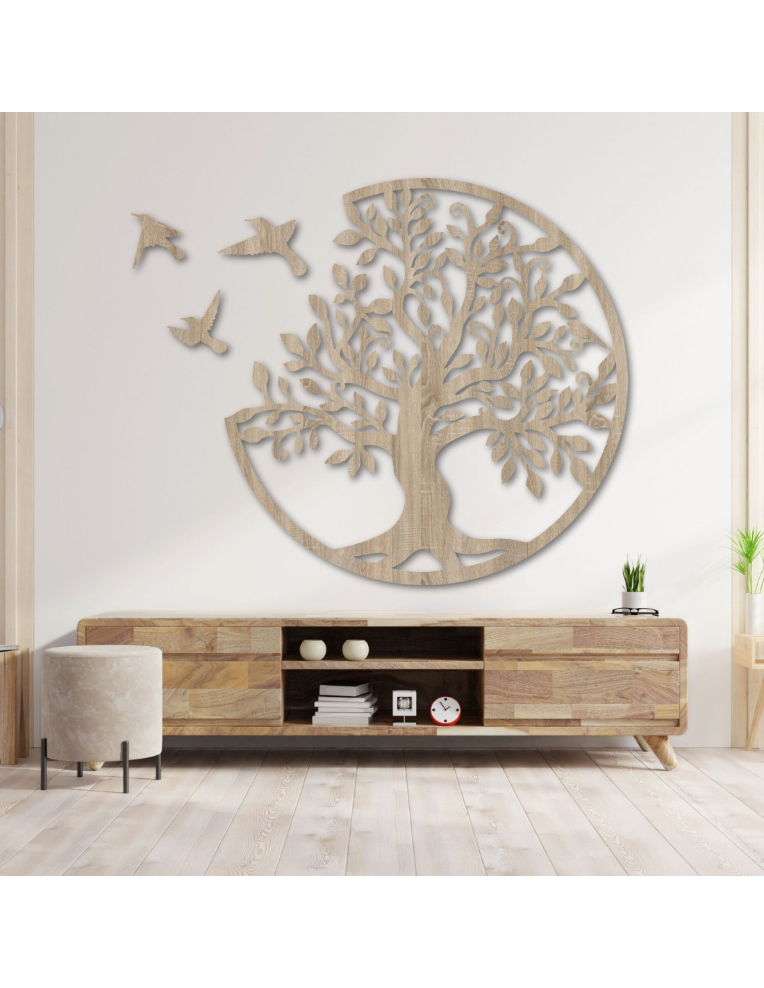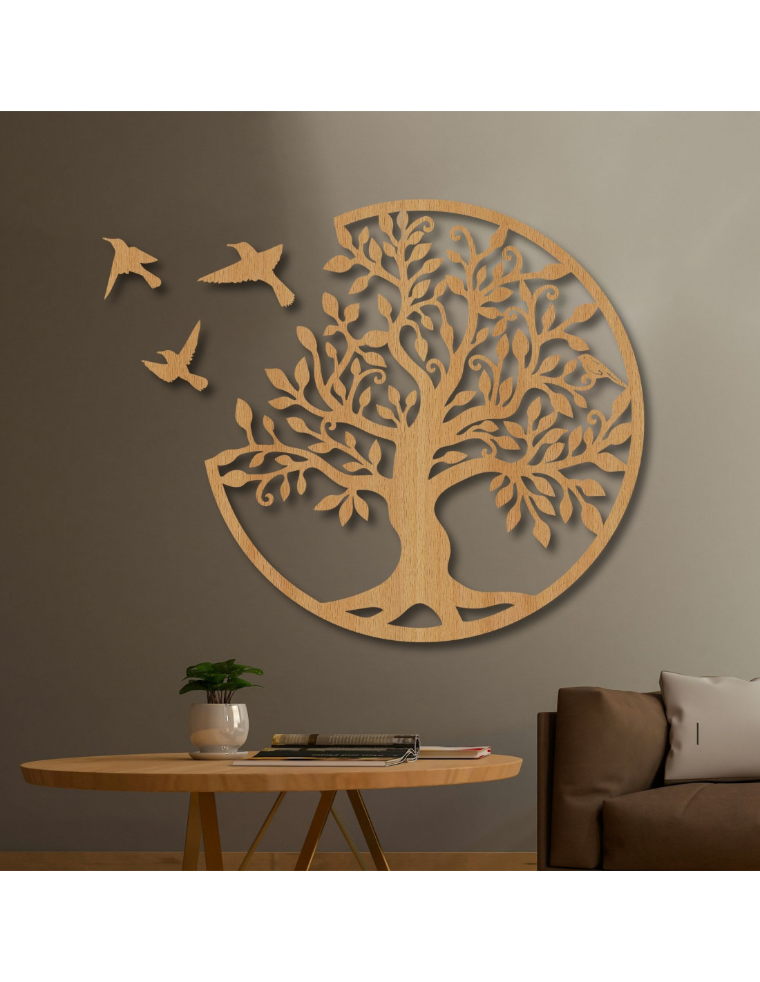 Lebensbaum aus Holz mit Vögeln - Natürliche Wanddekoration | GORCHLO
