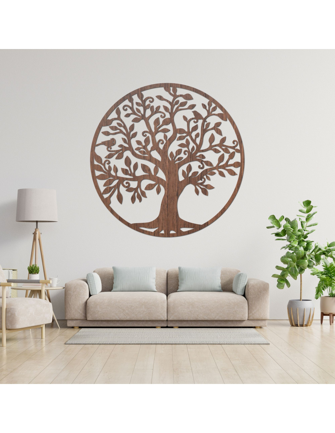 Der symbolische Lebensbaum in Holzoptik verleiht dem Zuhause einen Hauch von Natur und spiritueller Ausgewogenheit .