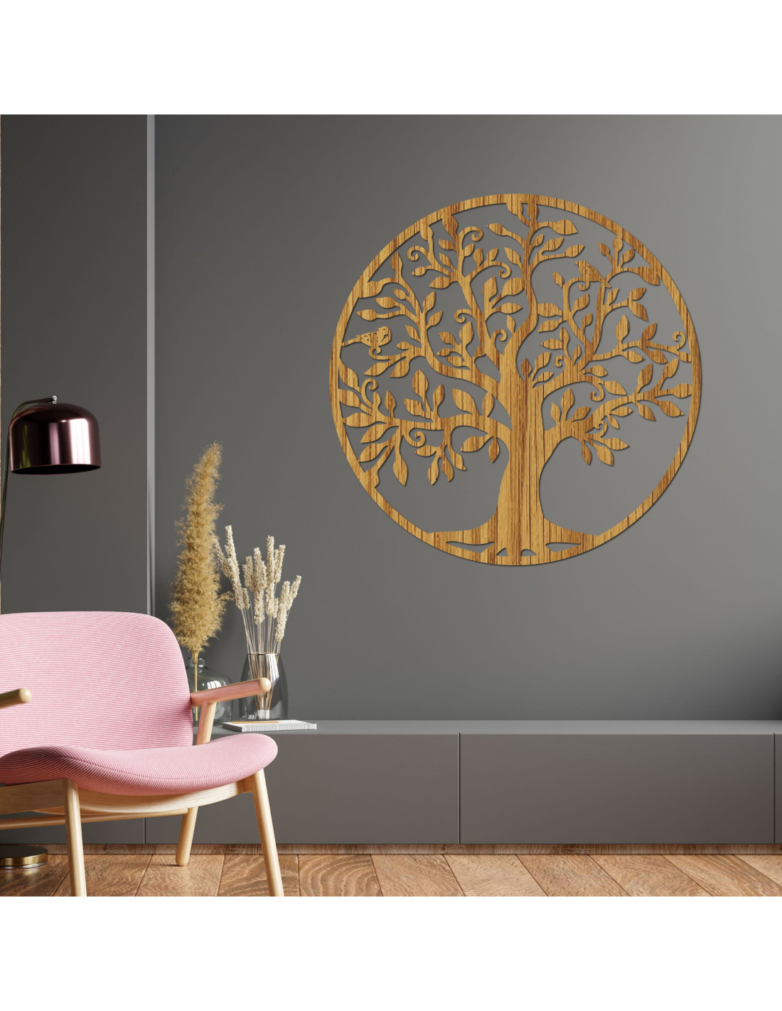 Der symbolische Lebensbaum in Holzoptik verleiht dem Zuhause einen Hauch von Natur und spiritueller Ausgewogenheit .
