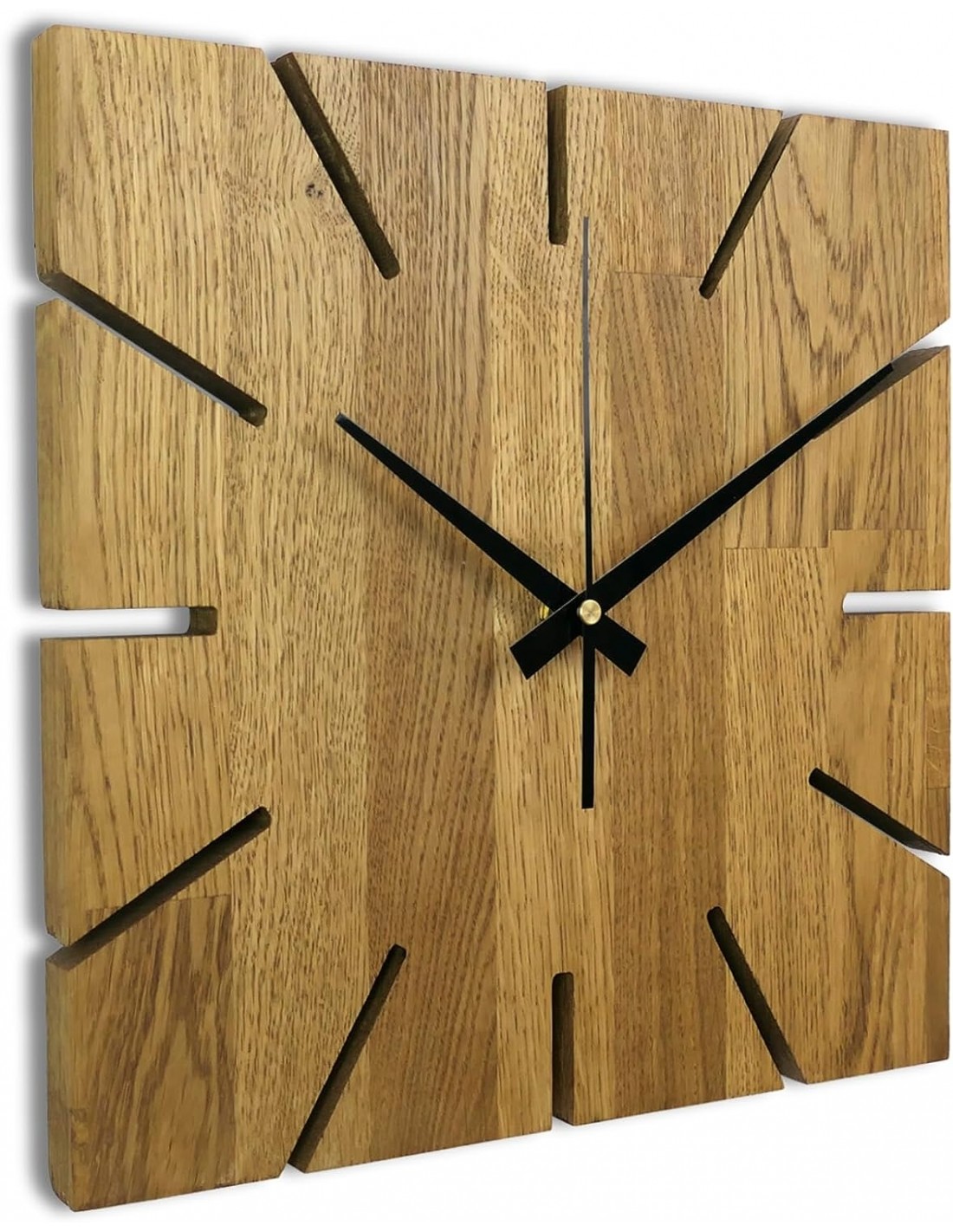 Wanduhr aus Holz – Eiche minimalistisches, modernes quadratisches Design