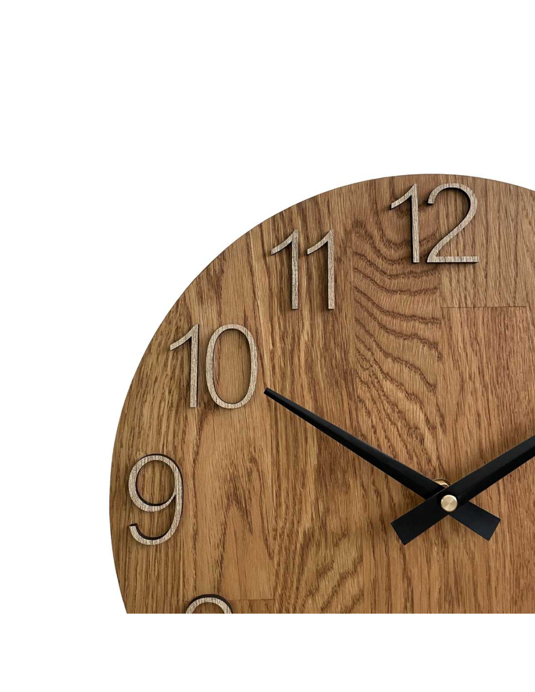 - Natürliches und elegantes Design – Die Kombination aus Eichenholz und Metallzeigern sorgt für einen modernen und dennoch zeitlosen Look.