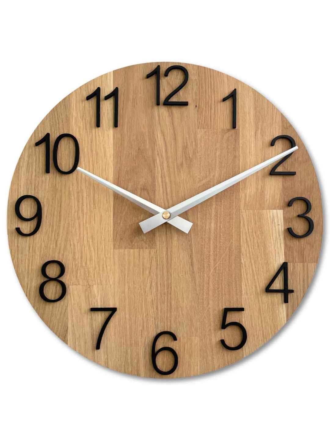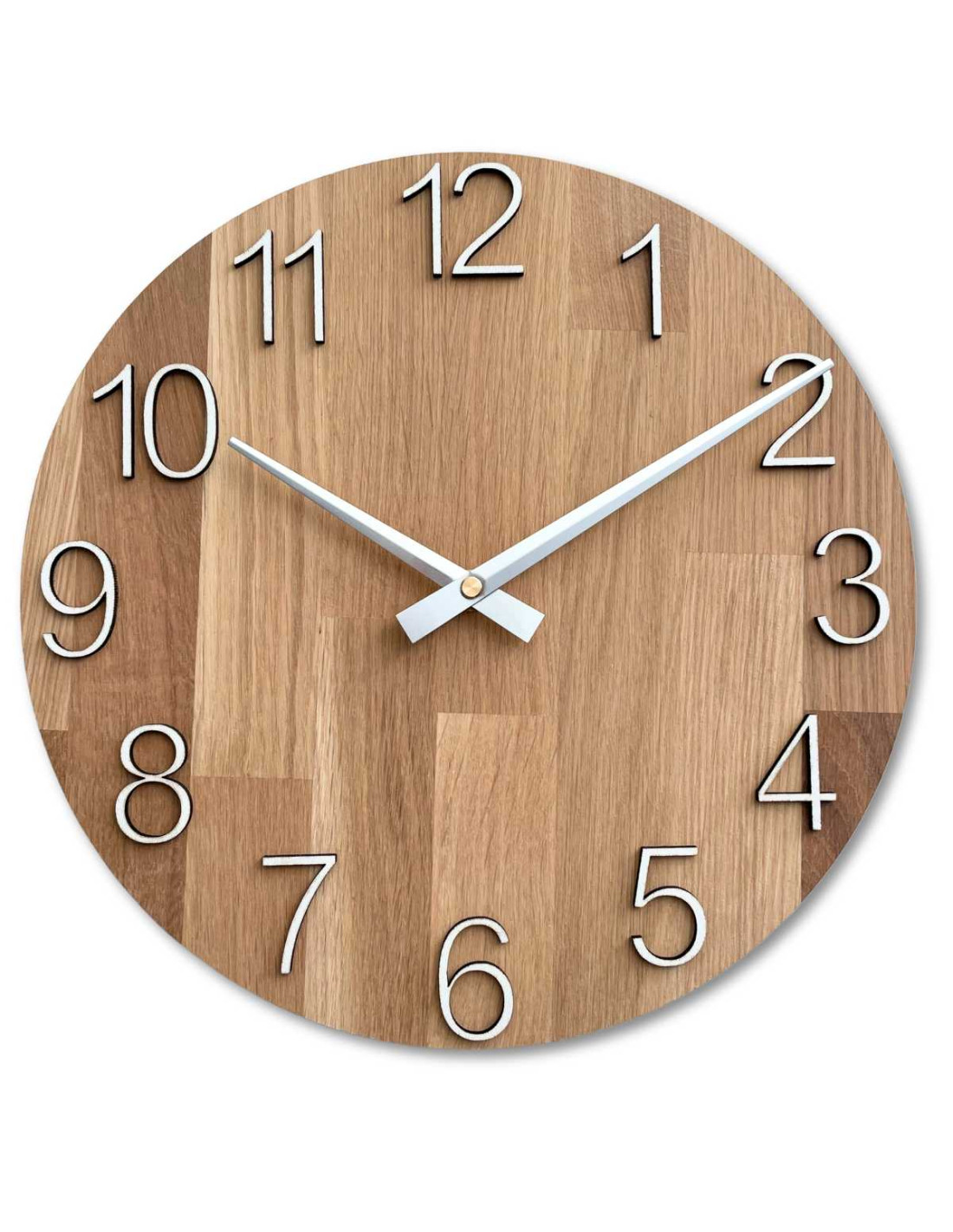 Elegante Wanduhr aus massiver Eiche – silberne Zeiger | SHTOP
