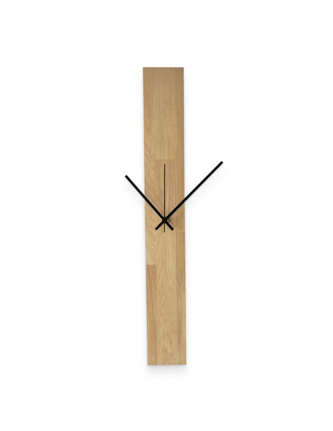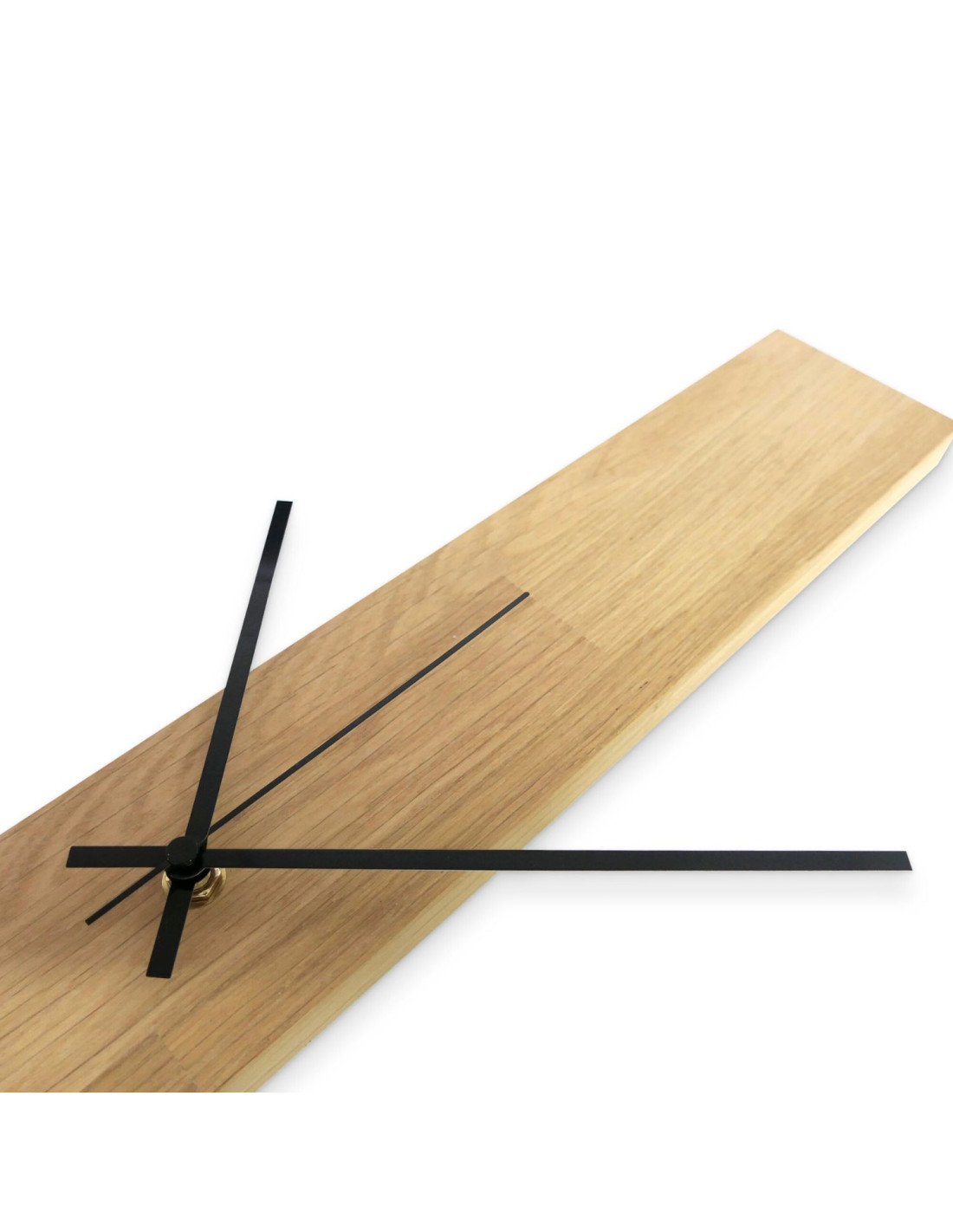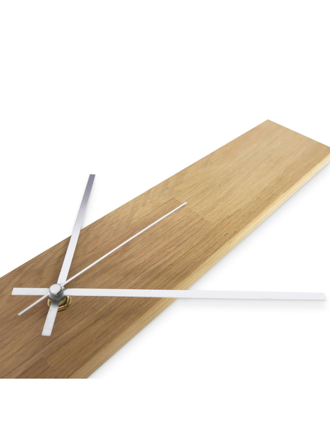 Das minimalistische Design ohne Zahlen lässt die natürliche Schönheit des Holzes und die feinen Details der Verarbeitung zur Geltung kommen.