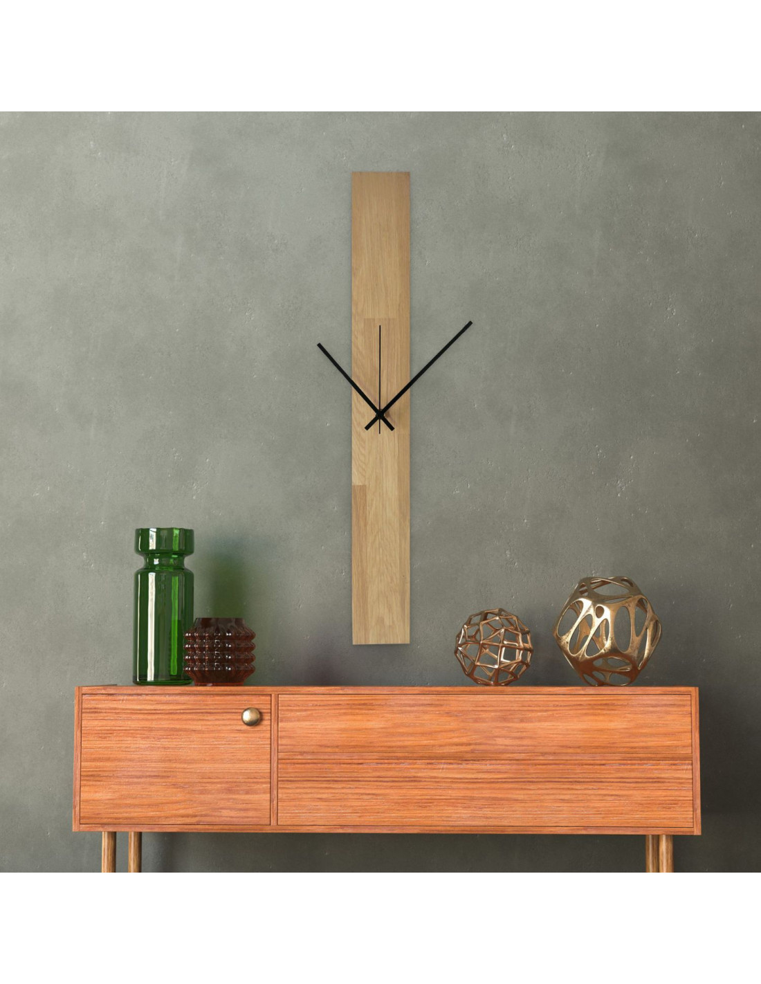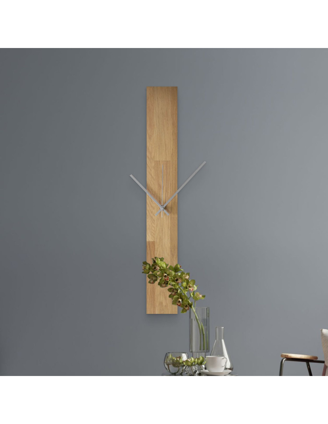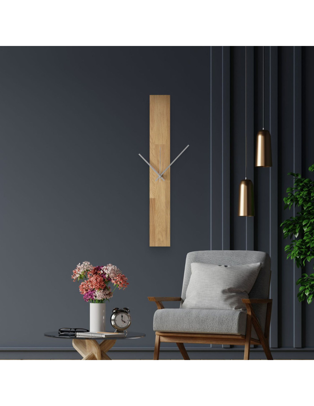 Das minimalistische Design ohne Zahlen lässt die natürliche Schönheit des Holzes und die feinen Details der Verarbeitung zur Geltung kommen.