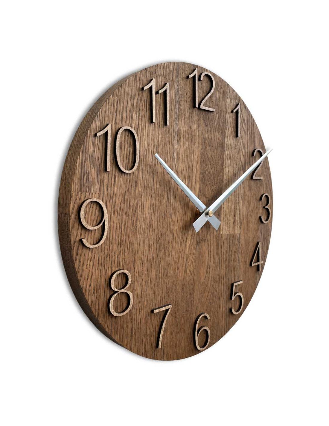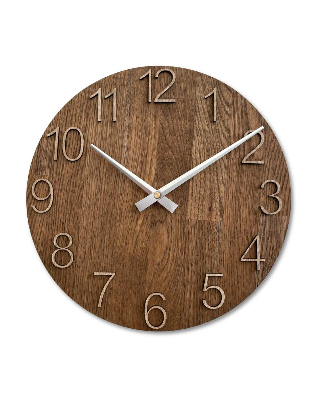 Jede Uhr wird aus massiven Eichenplatten gefertigt, die zunächst mittels CNC-Technik präzise in die gewünschte Form und Größe geschnitten werden .