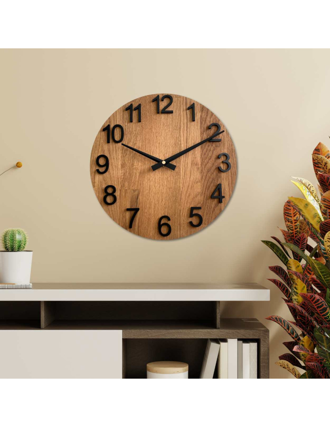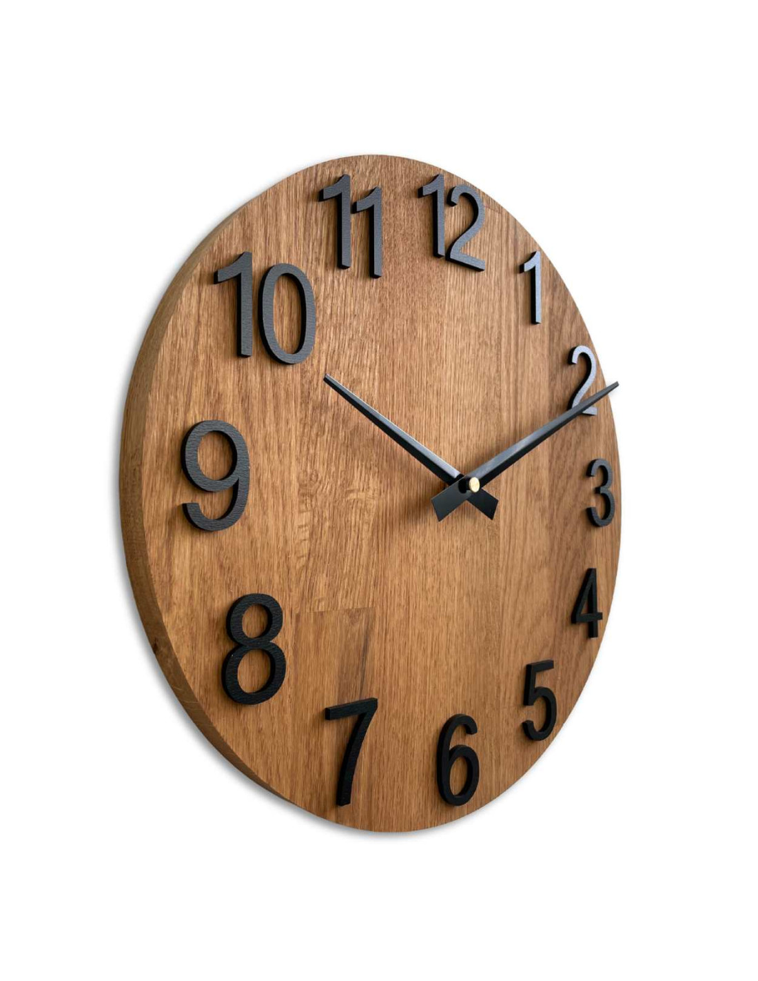 - Elegantes Design: Die Kombination aus Eichenholz und Metallzeigern erzeugt einen modernen und dennoch zeitlosen Look.