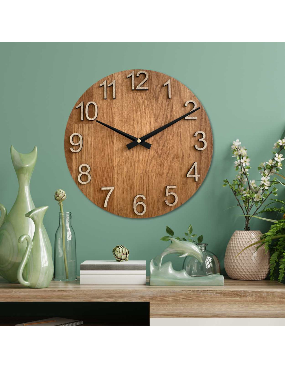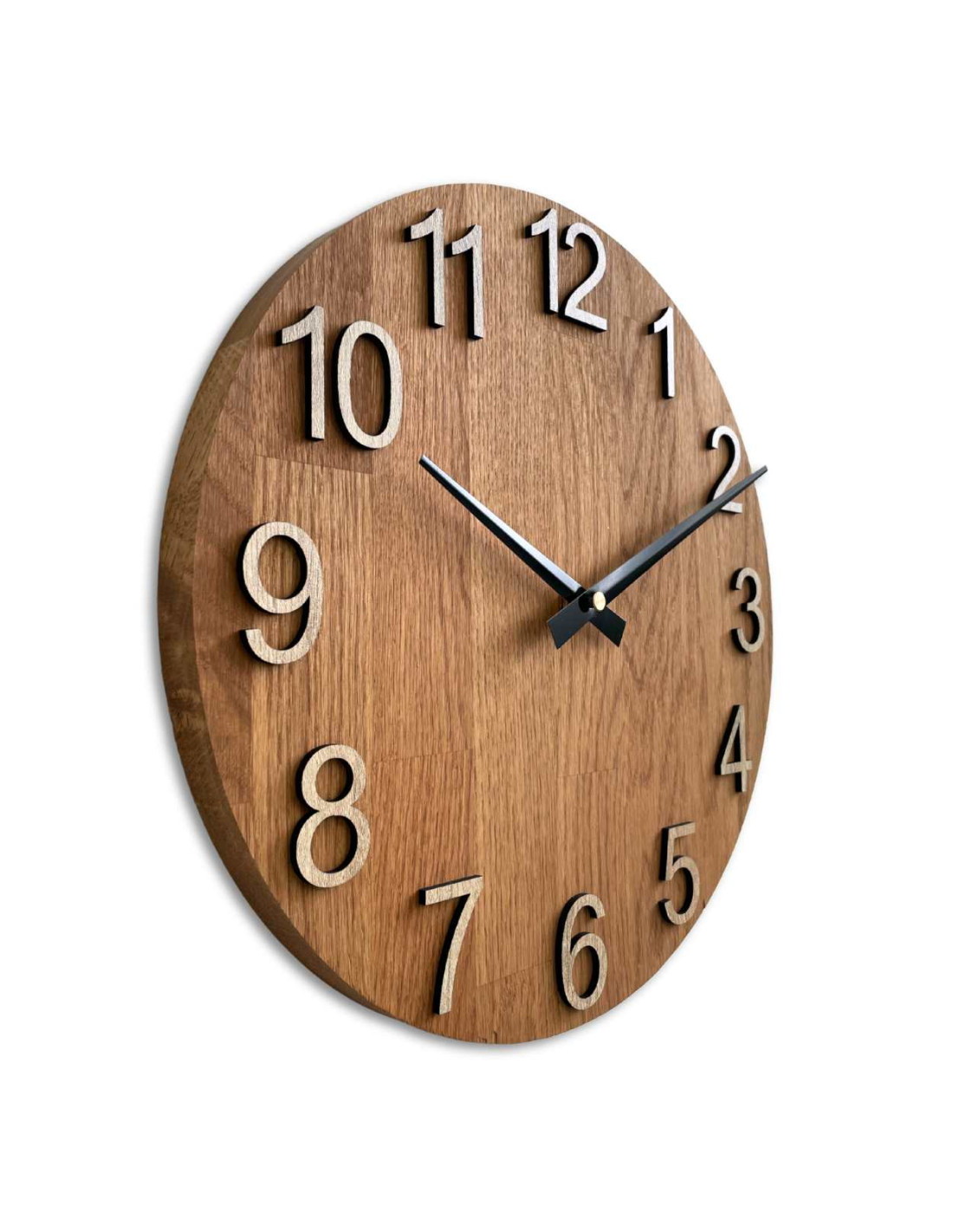 - Elegantes Design: Die Kombination aus Eichenholz und Metallzeigern erzeugt einen modernen und dennoch zeitlosen Look.