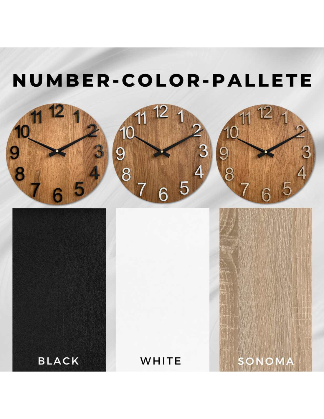 ➡️ Struktur: Jede Uhr ist einzigartig, da jedes Stück Holz eine andere Textur, Maserung und Holzfarbe aufweist.