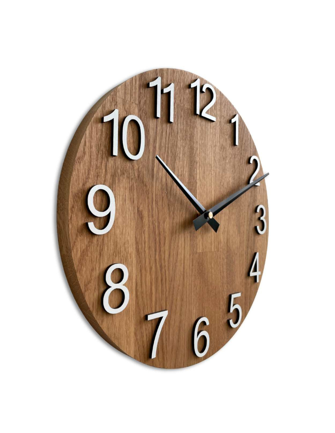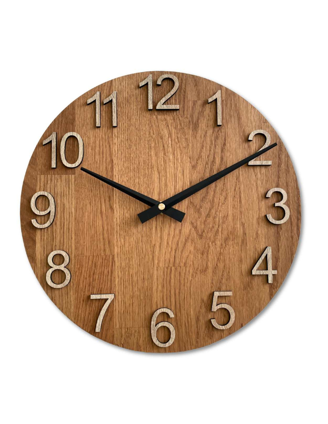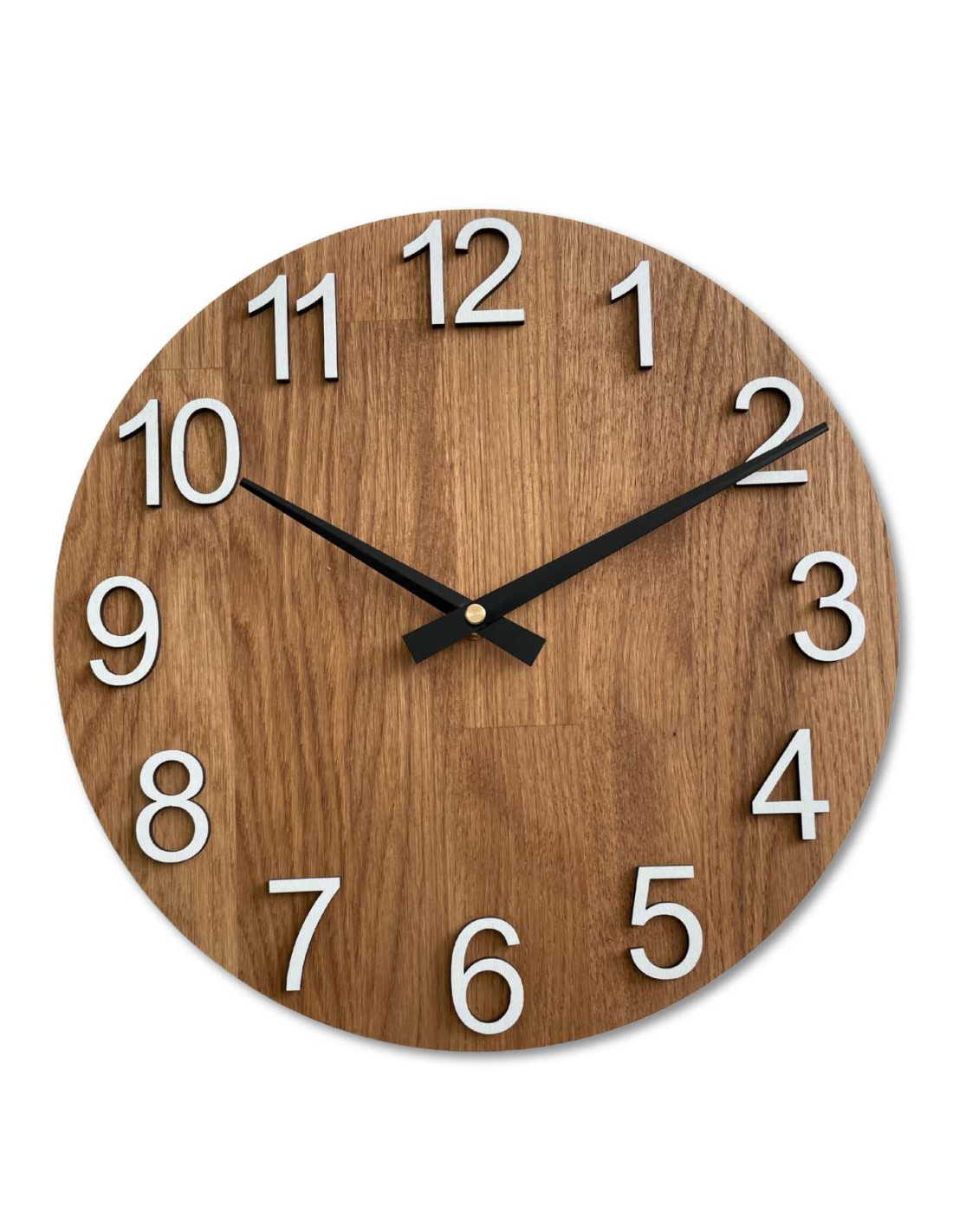 - Elegantes Design: Die Kombination aus Eichenholz und Metallzeigern erzeugt einen modernen und dennoch zeitlosen Look.