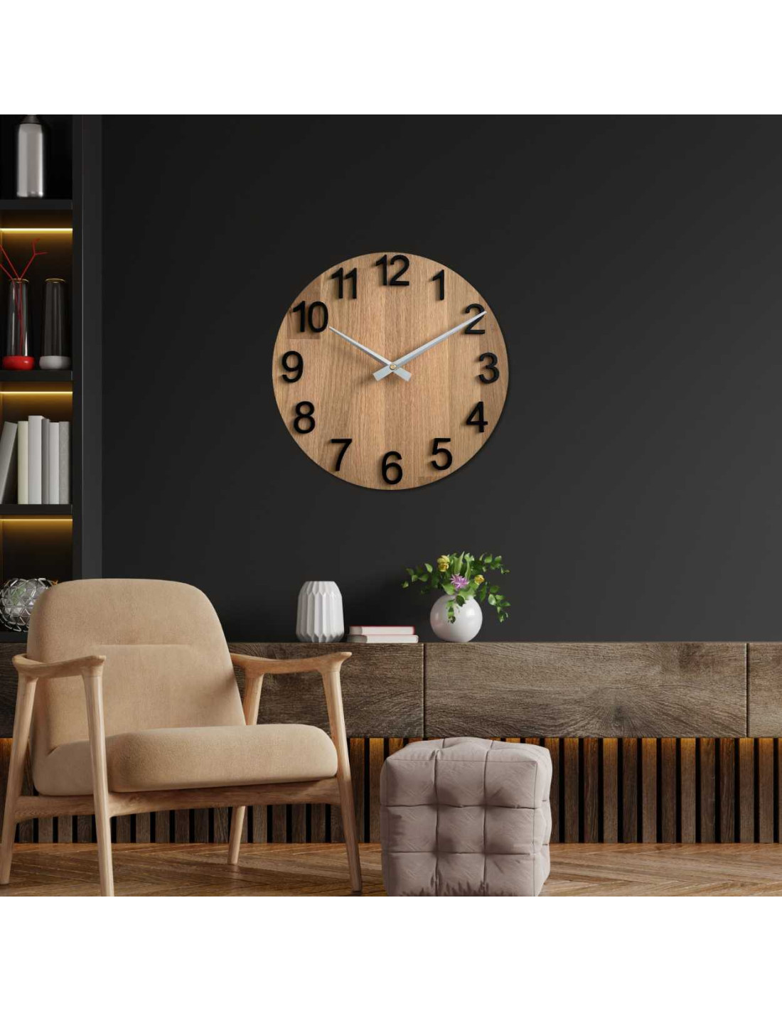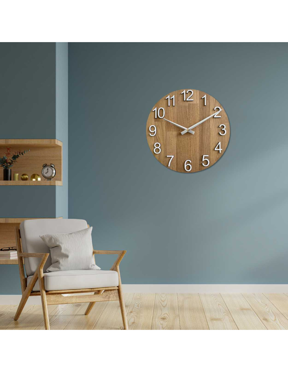 Die Uhr ist aus Naturholz gefertigt, das eine warme und harmonische Ausstrahlung hat.