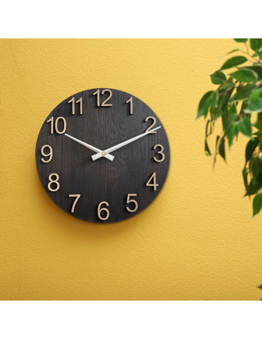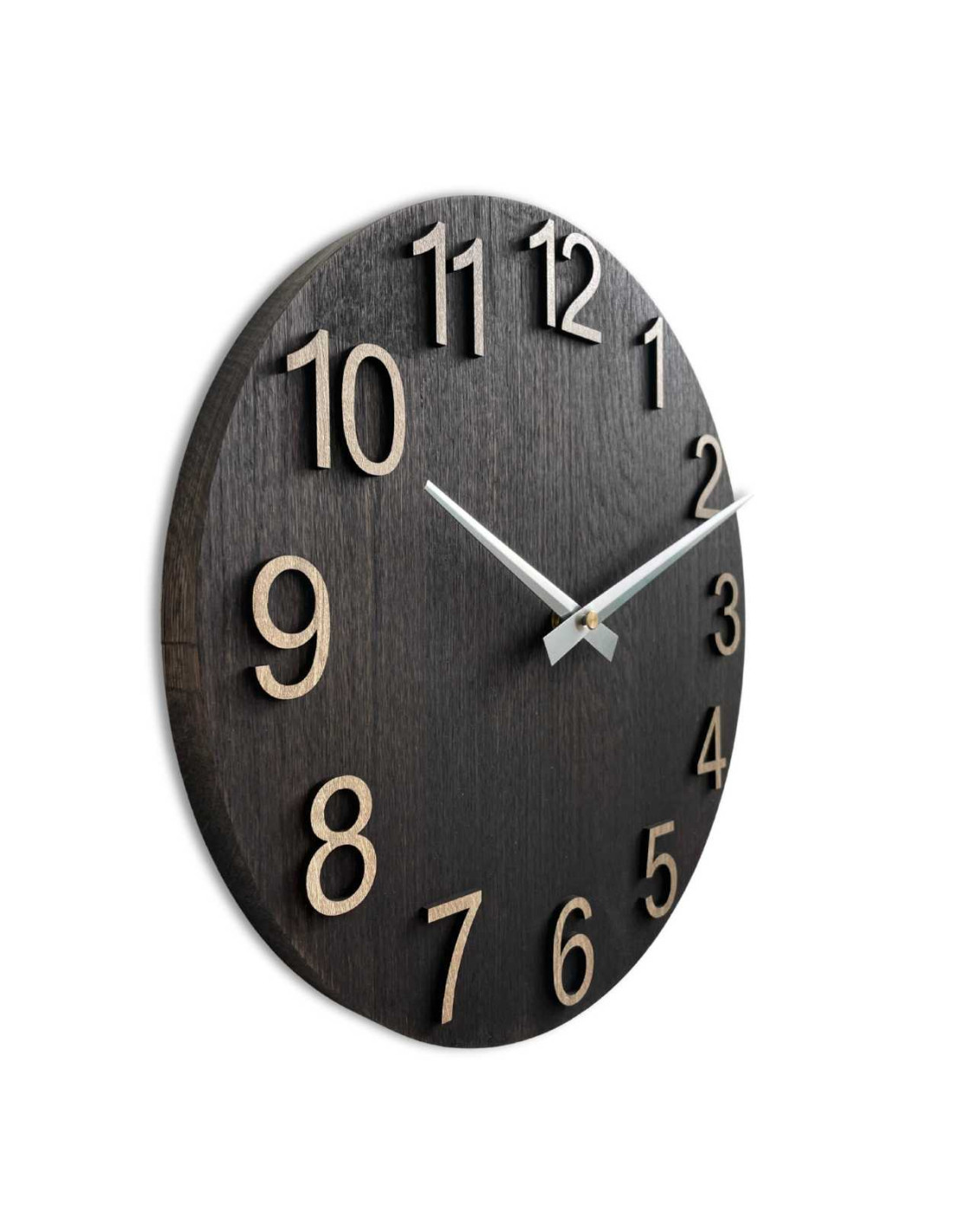 - Elegantes Design: Die Kombination aus Eichenholz und Metallzeigern erzeugt einen modernen und dennoch zeitlosen Look.