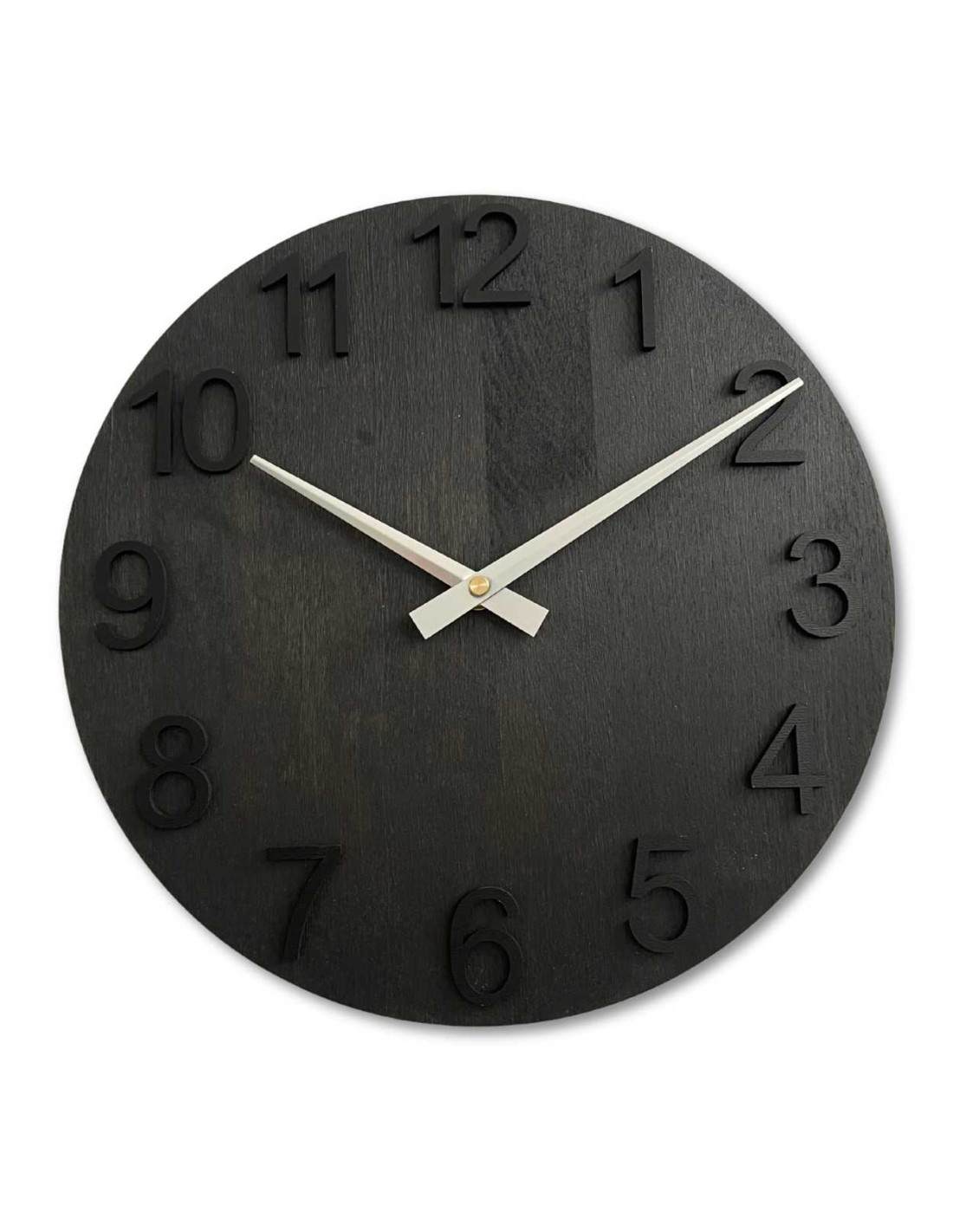 Jede Uhr wird aus massiven Eichenholzplatten hergestellt, die zunächst mithilfe von CNC-Technologie präzise in die gewünschte Form und Größe zugeschnitten werden.