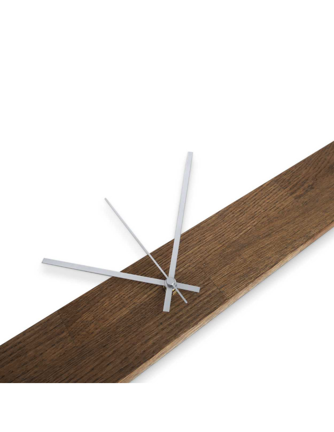 Die metallenen Zeiger bilden einen Kontrast zum Holzsockel und erzeugen so einen eleganten visuellen Effekt.