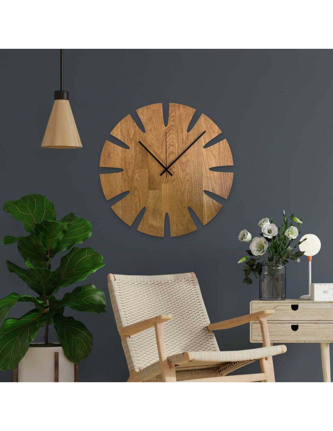 - Elegantes Design: Die Kombination aus Eichenholz und Metallzeigern verleiht dem Ganzen einen modernen und zeitlosen Look.
