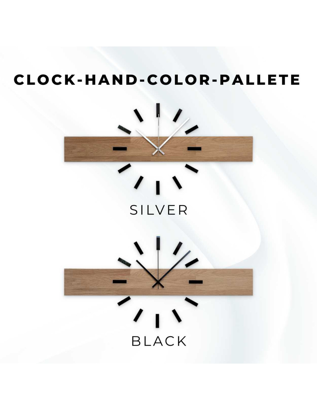 • Uhrzeiger: Metall, silber/schwarz – Minutenzeiger: 11,5 cm (4,53 Zoll), Stundenzeiger: 15,0 cm (5,91 Zoll), Sekundenzeiger: 10,09 cm (3,97 Zoll)