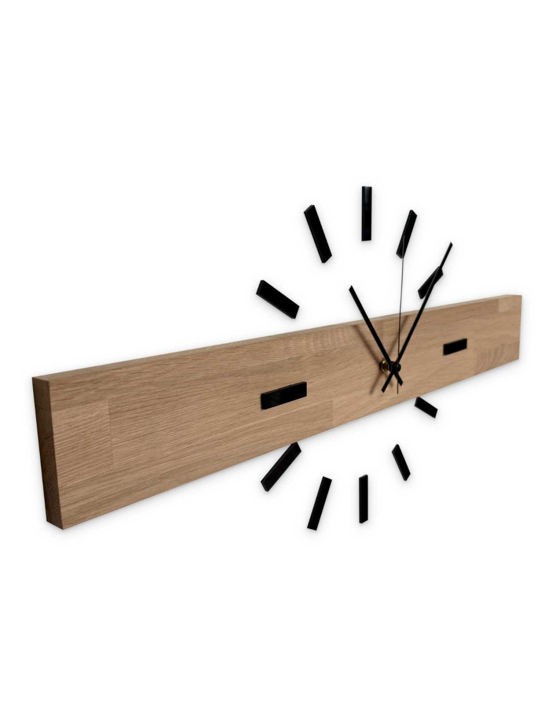 Jede Uhr wird aus massiven Eichenholzplatten hergestellt, die zunächst mithilfe von CNC-Technologie präzise in die gewünschte Form und Größe zugeschnitten werden.